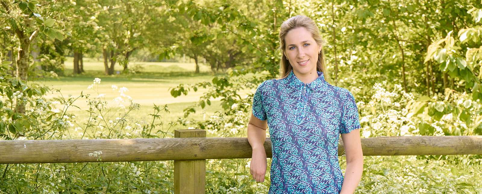 Pure Golf Ladies Reversible Gilet in Navy & Abstract Watercolour Print