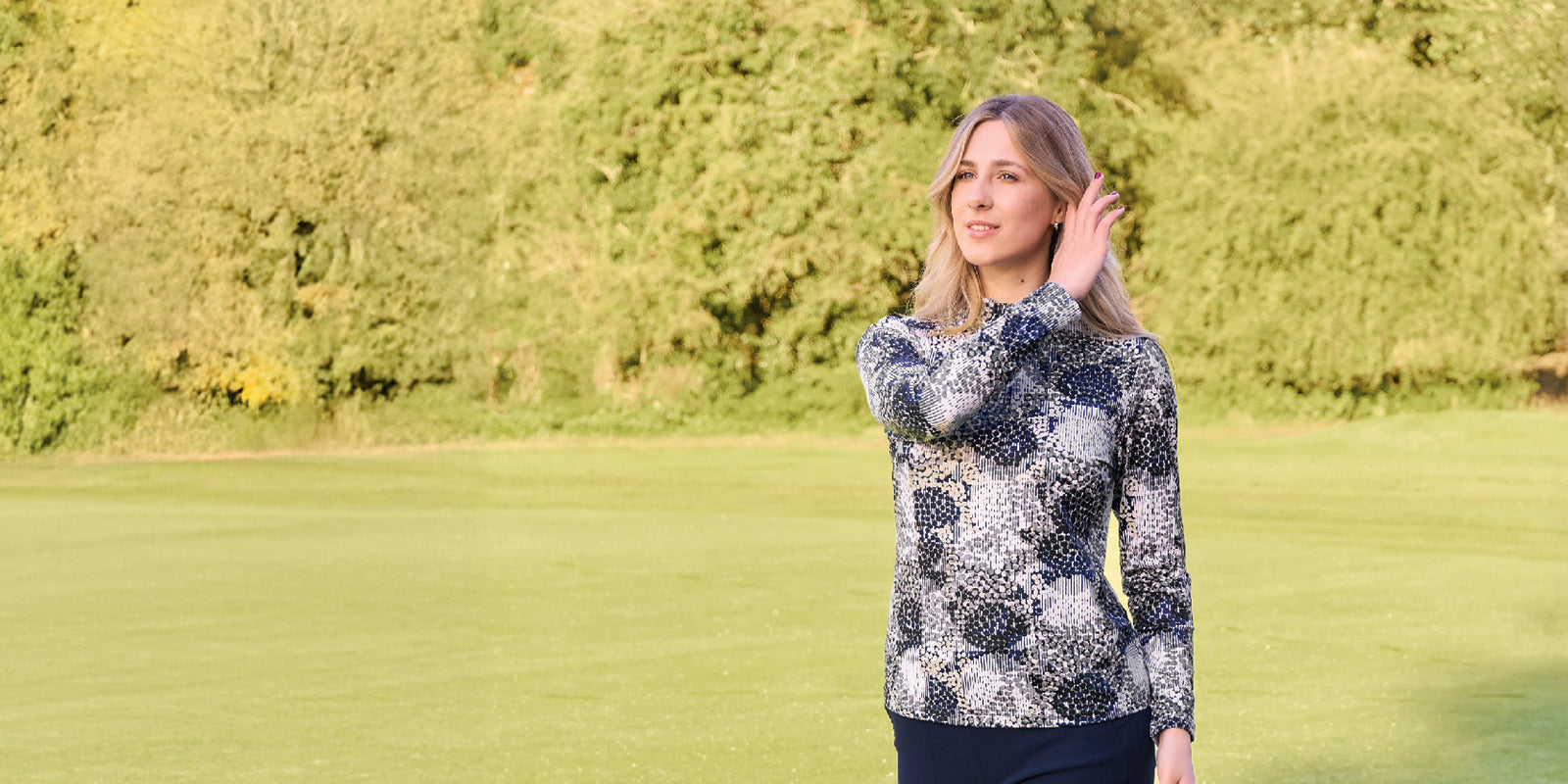 Pure Golf Ladies Long Sleeve Mid-Layer Top in Geometric Print