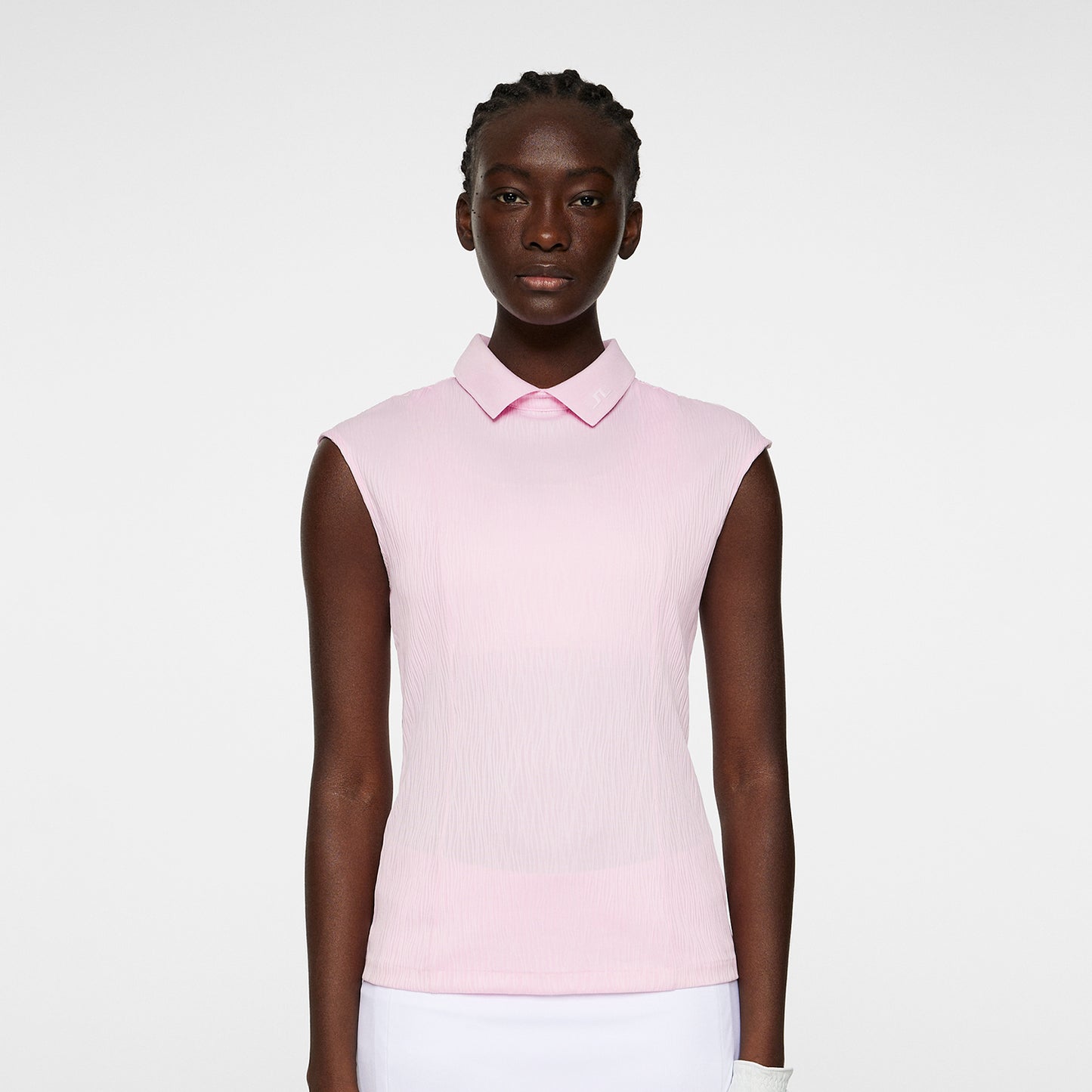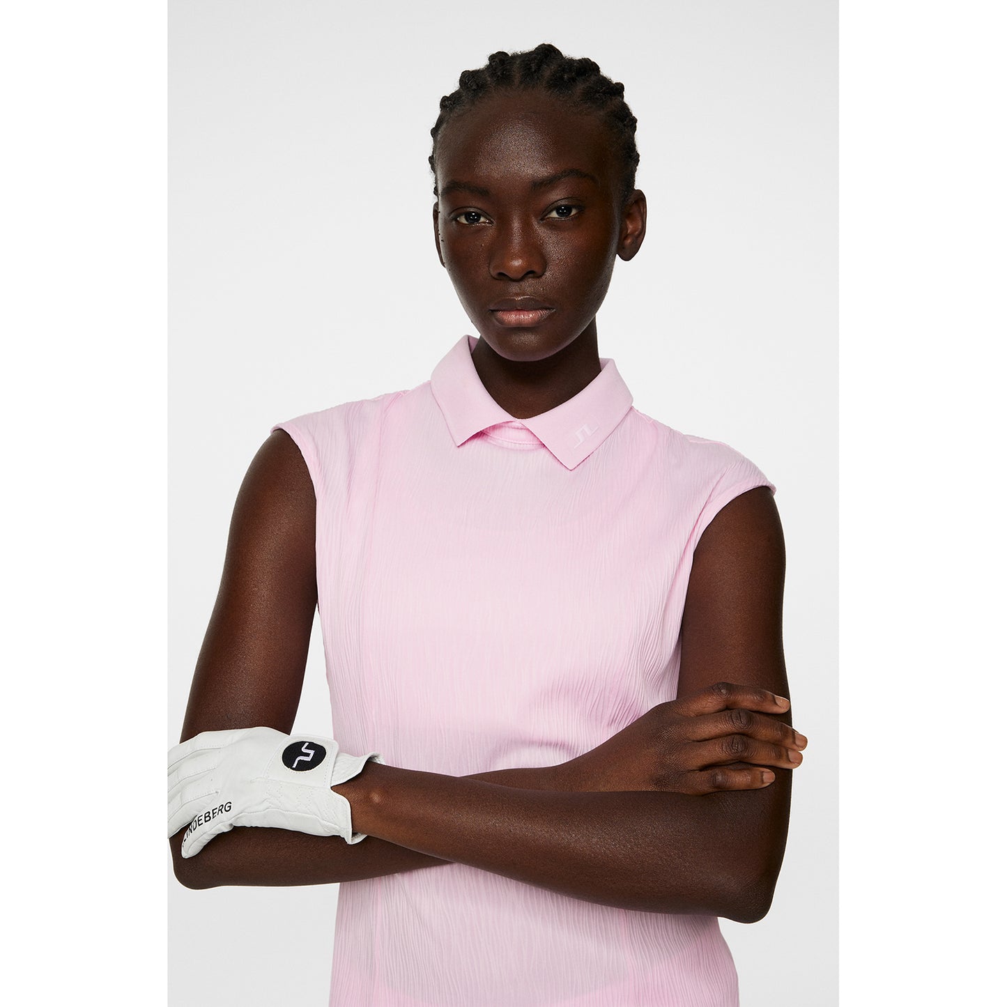 J.Lindeberg Ladies Cap Sleeve Polo with Subtle Wave Print - XL Only Left