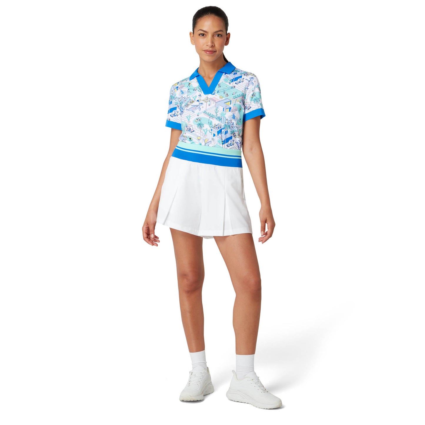 - Colour block, wide ribbed waistband with French blue and aqua stripe