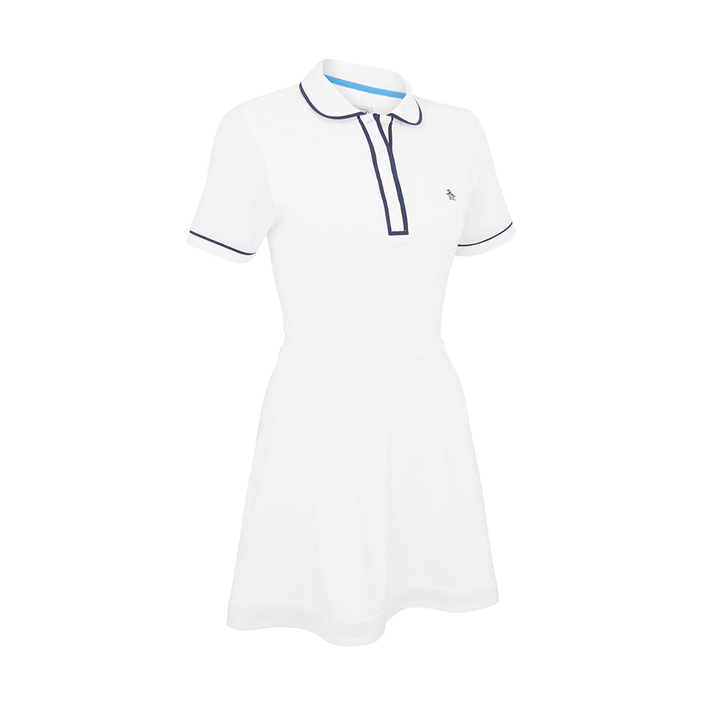 Original Penguin Ladies Mesh Detailed Short Sleeve Dress in Bright White