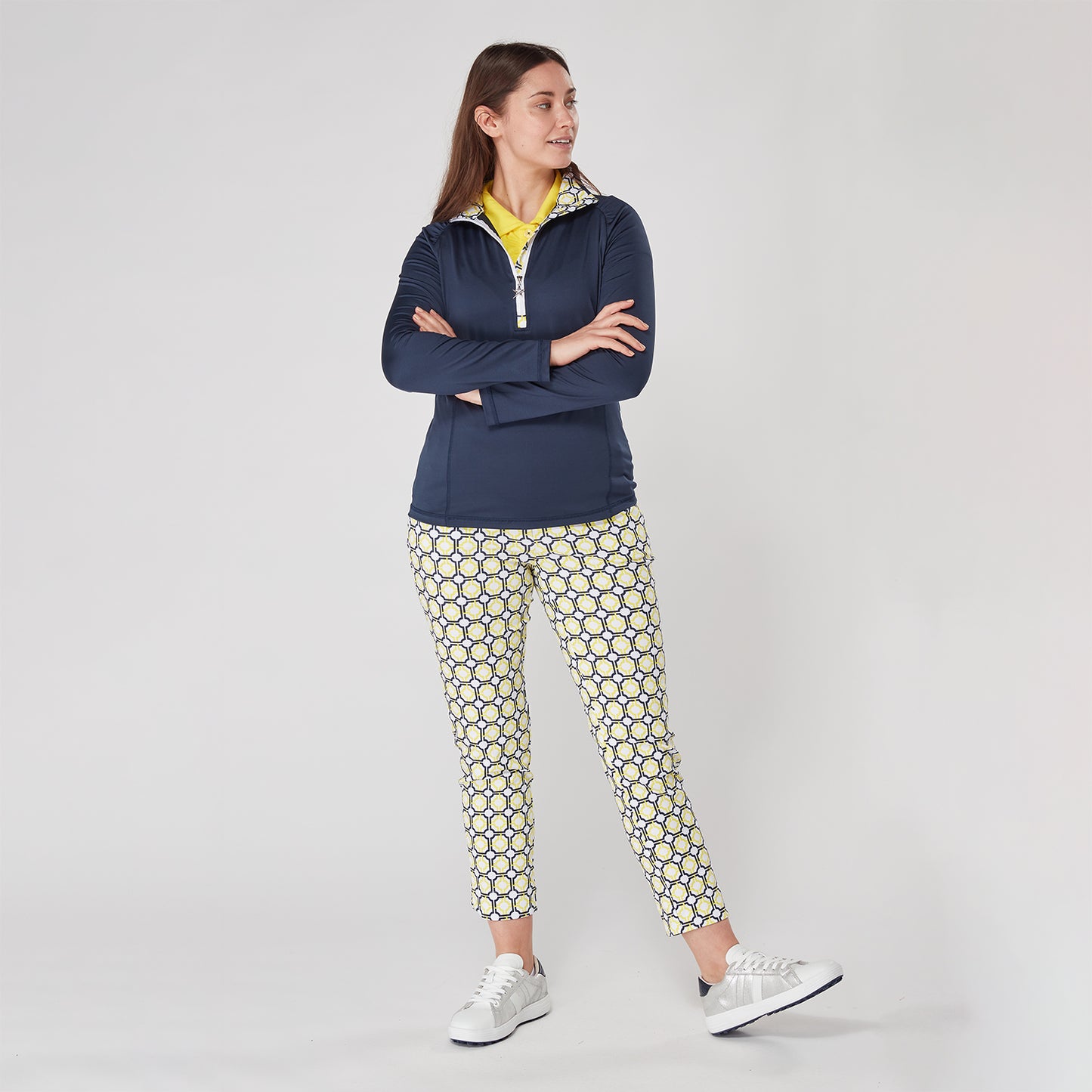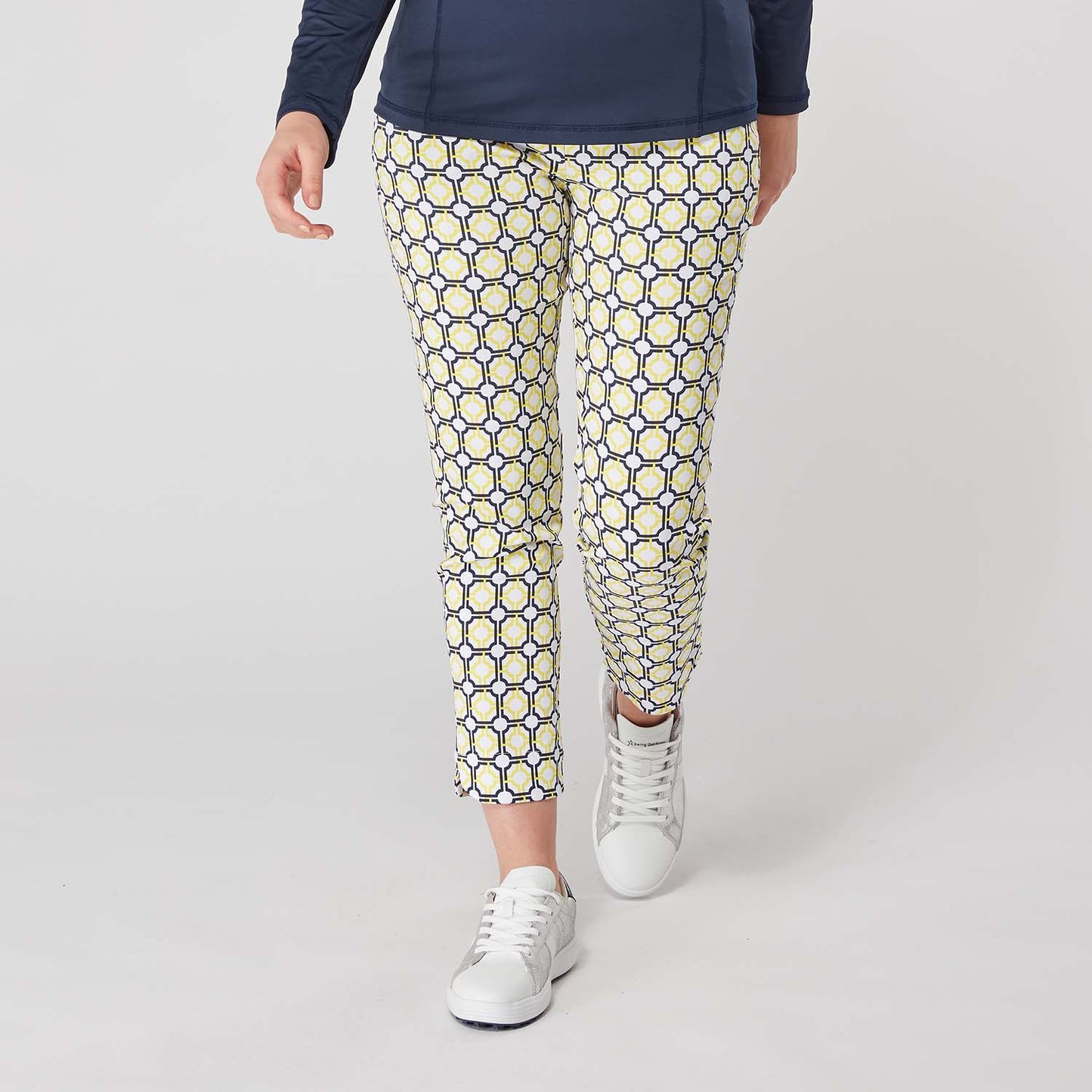 Swing Out Sister Ladies Sunshine and Navy Mosaic Pattern 7/8 Trousers