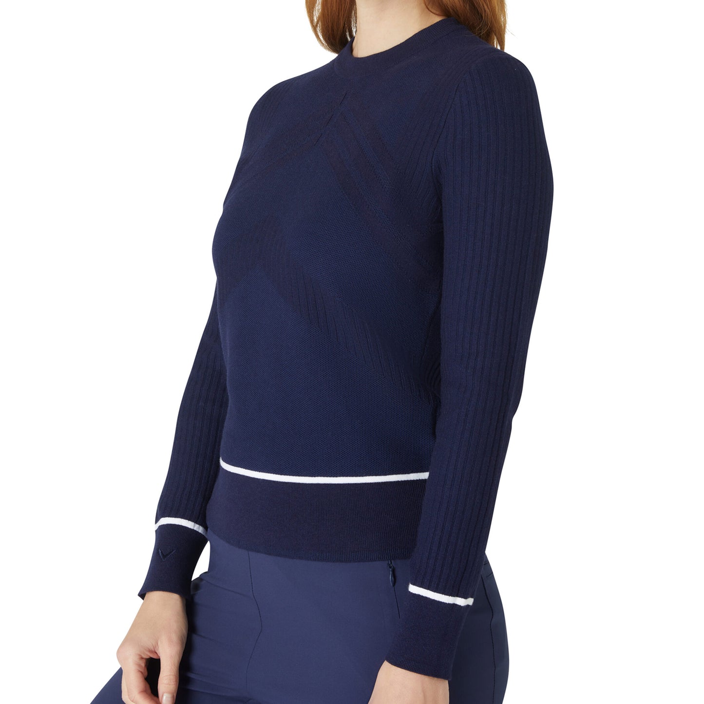 Callaway Ladies Cotton blend Chevron Sweater in Navy with Contrast Tipping