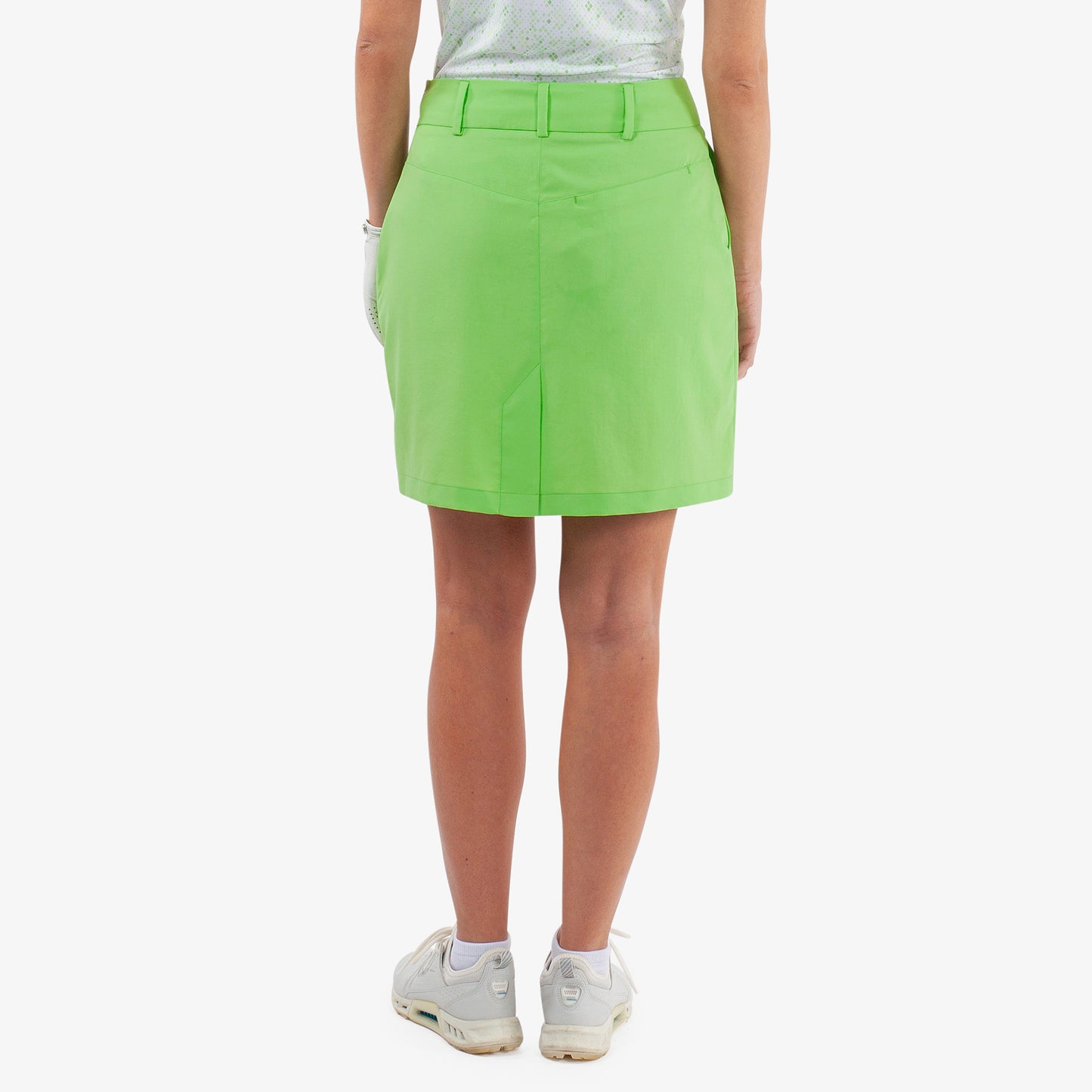 Enjoy enduring elegance with this sublime performance skort from Galvin Green. Styled in a vibrant chartreuse green hue, the super-soft fabric with mechanical stretch is lightweight, breathable, and quick-drying, providing ultimate comfort and ease of movement throughout your game. The flattering design offers a chic and feminine silhouette, while the front and rear pockets provide convenient storage for life's little essentials. Perfect for pairing with coordinating pieces, this skort will also blend seamlessly into your wardrobe, offering an elevated, stylish look both on and off the course.