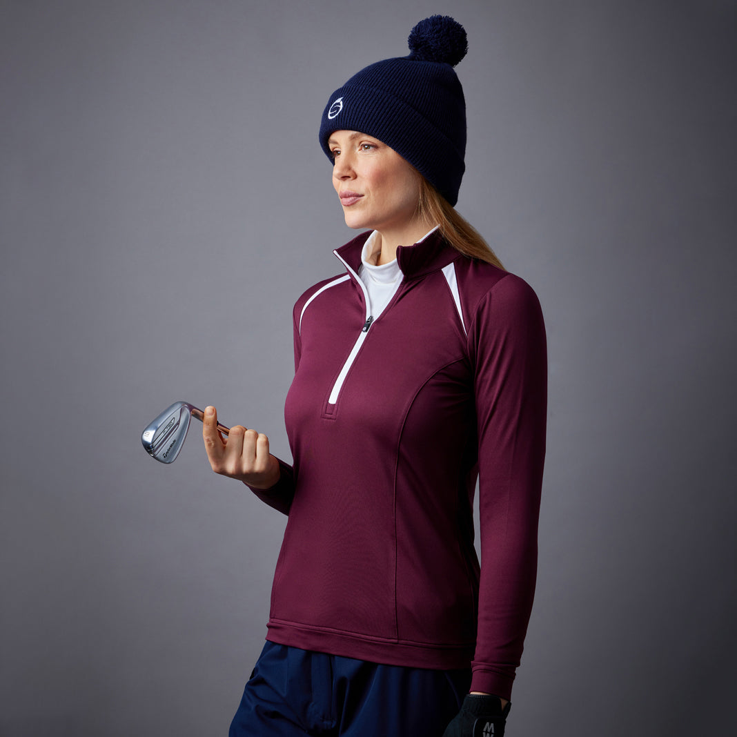 - 'Arosa', long sleeve mid-layer in mulberry & white