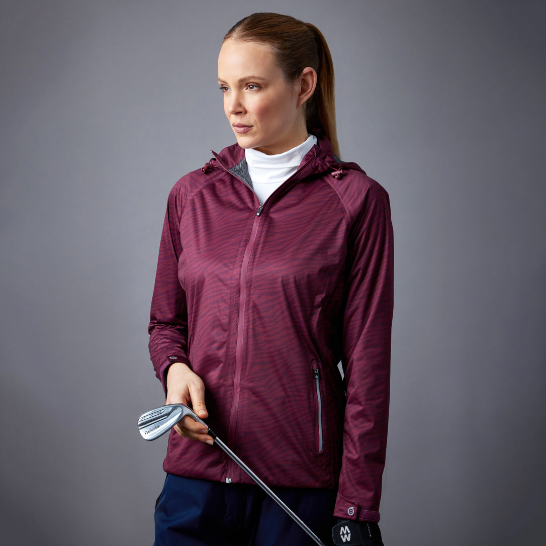 Sunderland Ladies WhisperDry Waterproof Jacket with Hood in Mulberry Zebra Print