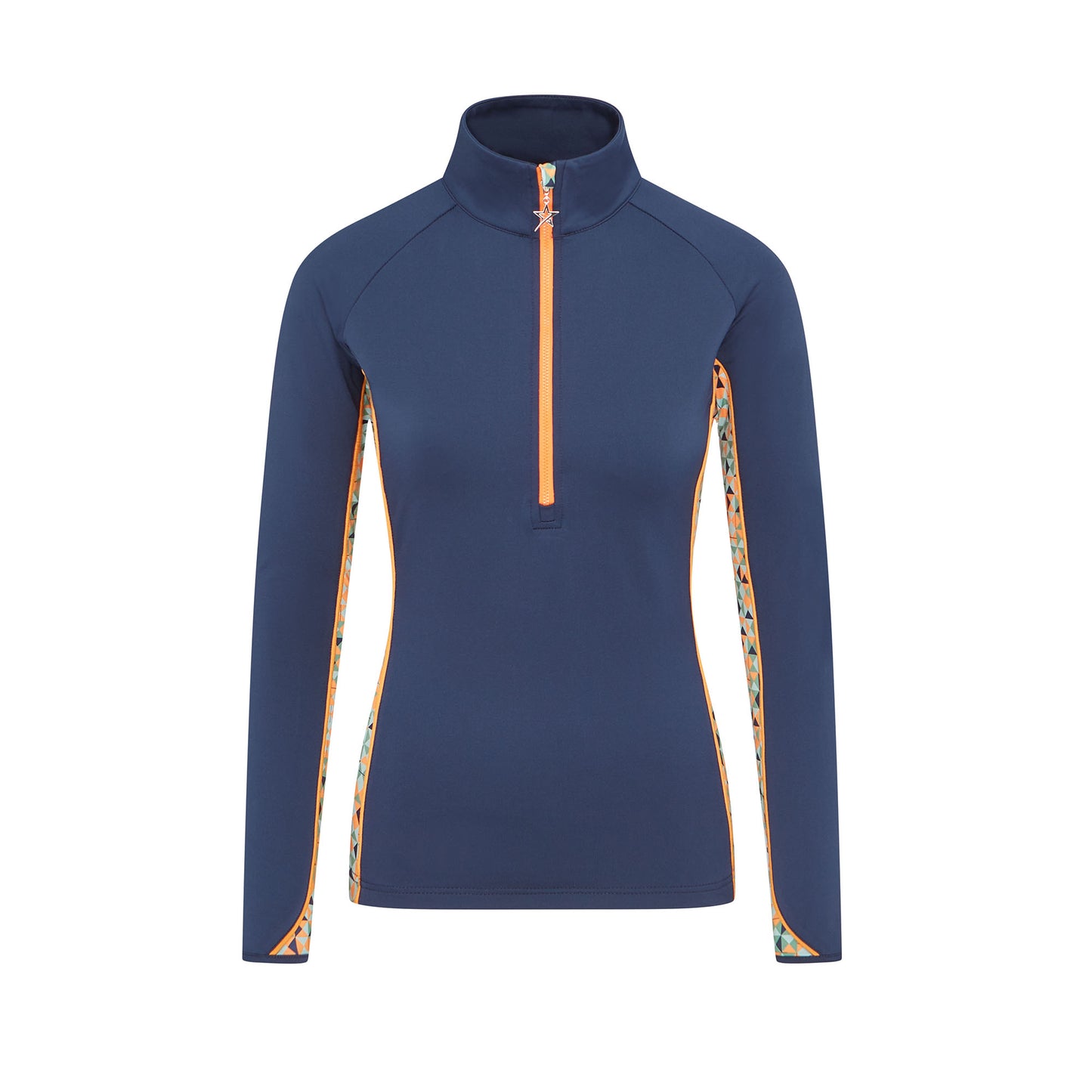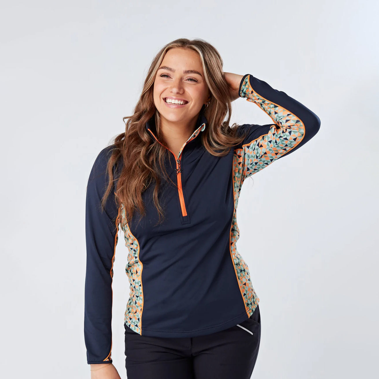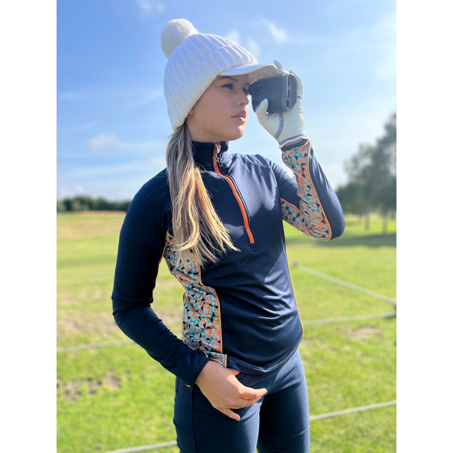 Le changement de saison appelle de jolies superpositions, et ce nouveau design époustouflant, en bleu marine avec des panneaux latéraux contrastés qui présentent un motif géométrique audacieux, adouci par des nuances de vert sauge, de bleu marine et d'abricot, sera certainement celui que vous atteindrez. pour chaque fois que vous vous rendez au cours ! Le tissu coupe slim et doux et extensible est respirant et doté de propriétés d'évacuation de l'humidité, tandis que la conception à fermeture éclair 1/4 signifie qu'il est facile à enfiler par-dessus votre tête et à l'ajuster en fonction de votre style. Cette pièce peut facilement être portée de plusieurs façons, près de la peau, sur un polo comme pull léger ou prise en sandwich entre plusieurs couches pour plus de chaleur, ce qui en fait un ajout super chic et polyvalent à votre garde-robe !