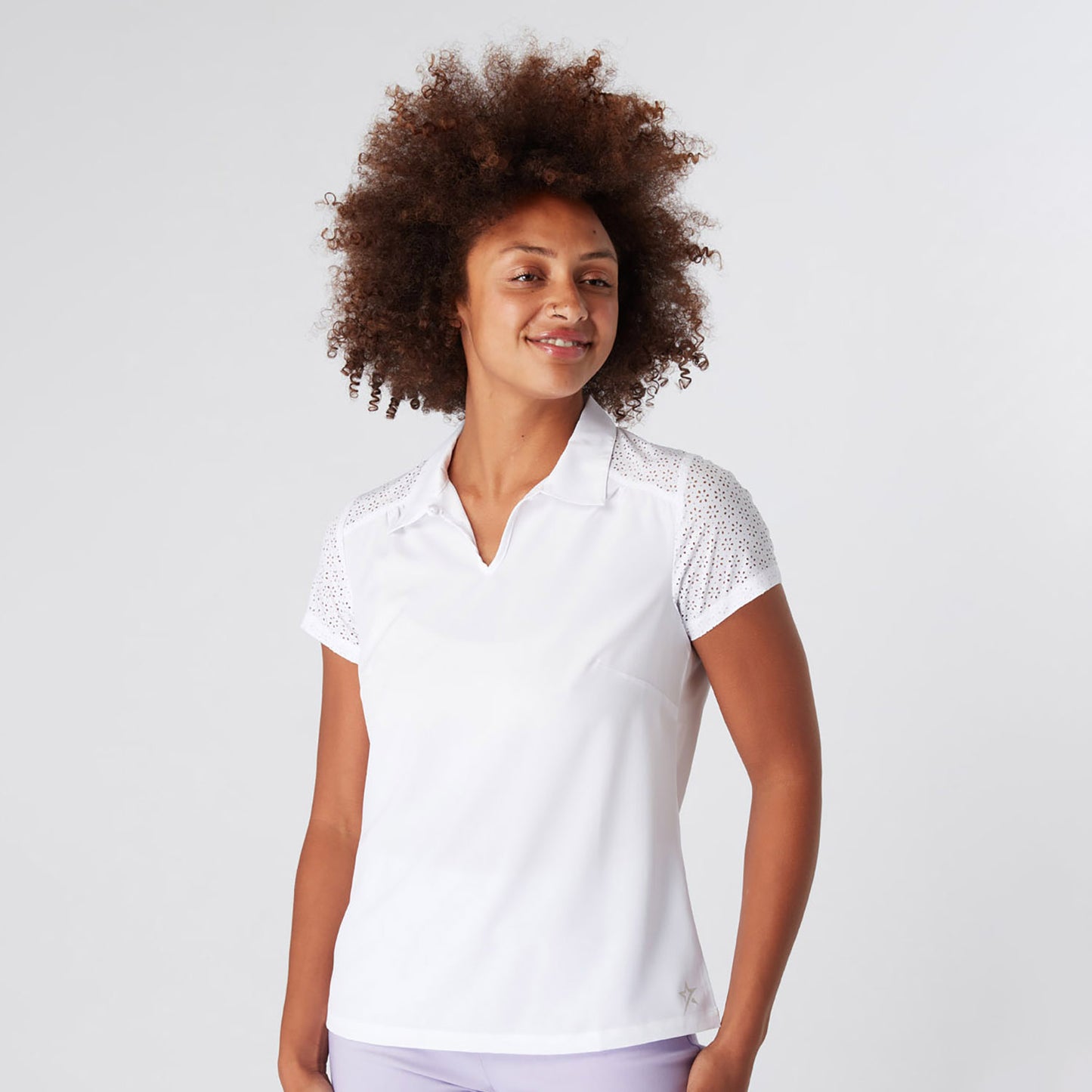 Swing Out Sister Ladies Laser Print Cap Sleeve Polo in Optic White