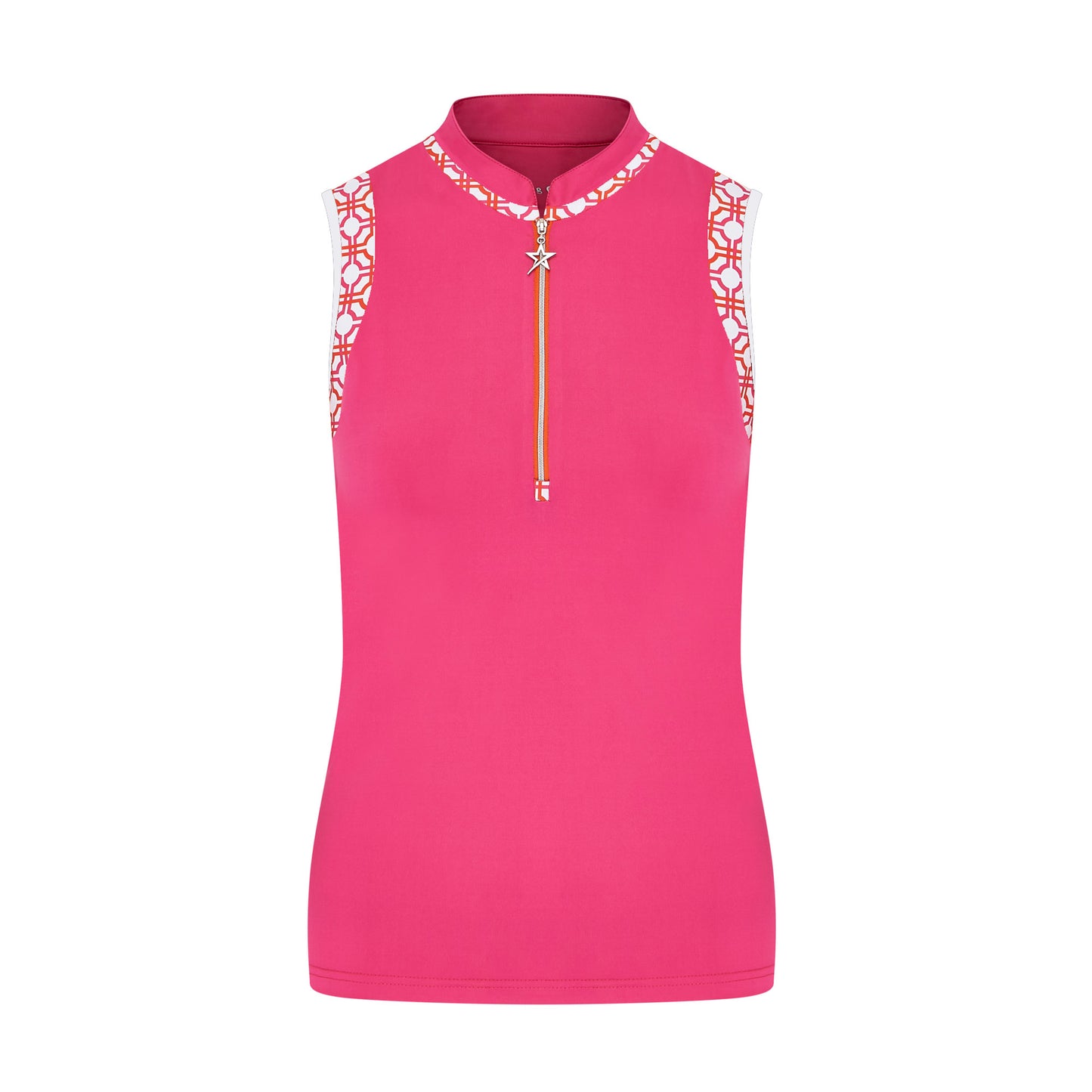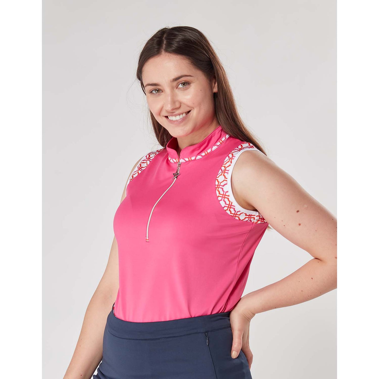 Swing Out Sister Ladies Sleeveless Polo in Lush Pink and Mandarin with Zip-Neck