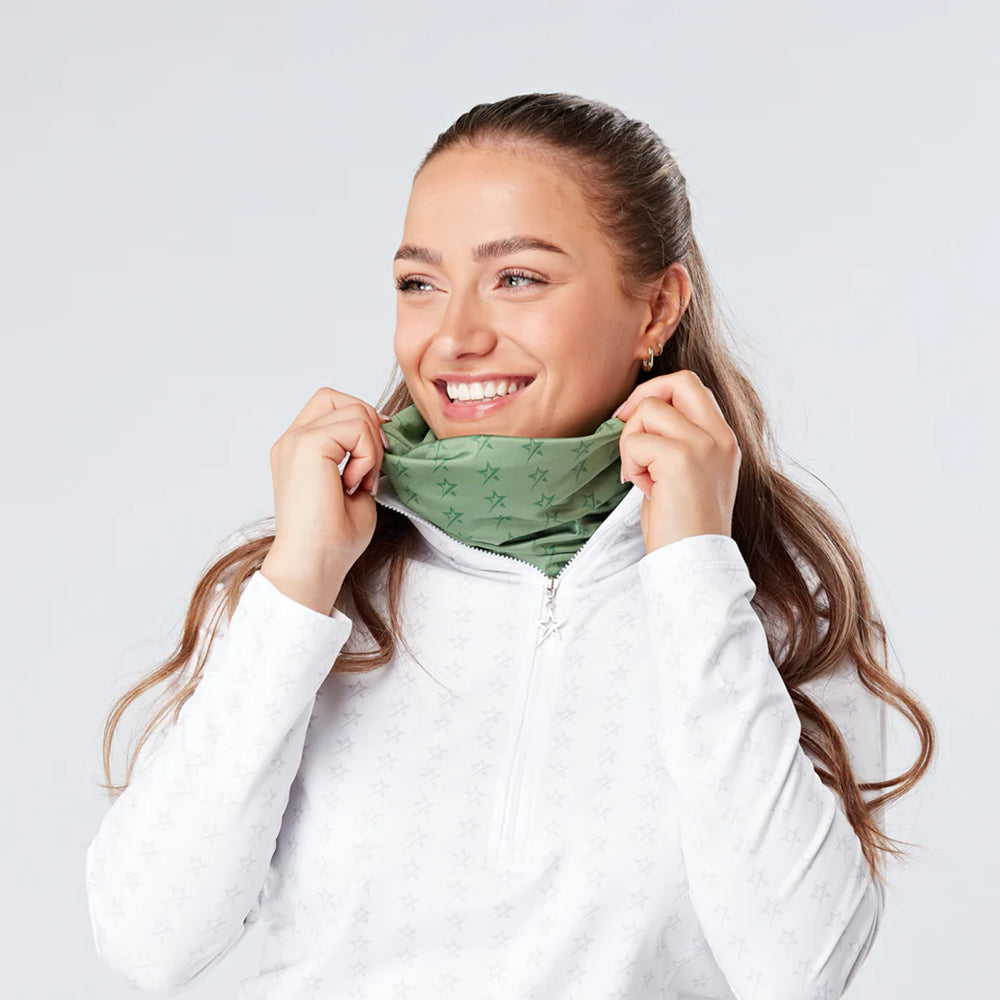 Les matins frais et frais nécessitent des accessoires confortables. Ce snood tendance et fonctionnel de Swing Out Sister est créé avec du stretch supplémentaire pour qu'il soit facile à enfiler et à enlever par-dessus votre tête. Le tissu léger de style jersey est conçu dans un superbe vert sauge avec un motif d'étoiles ton sur ton sur toute la surface, et est garanti pour un look fabuleux sur et en dehors du parcours de golf.