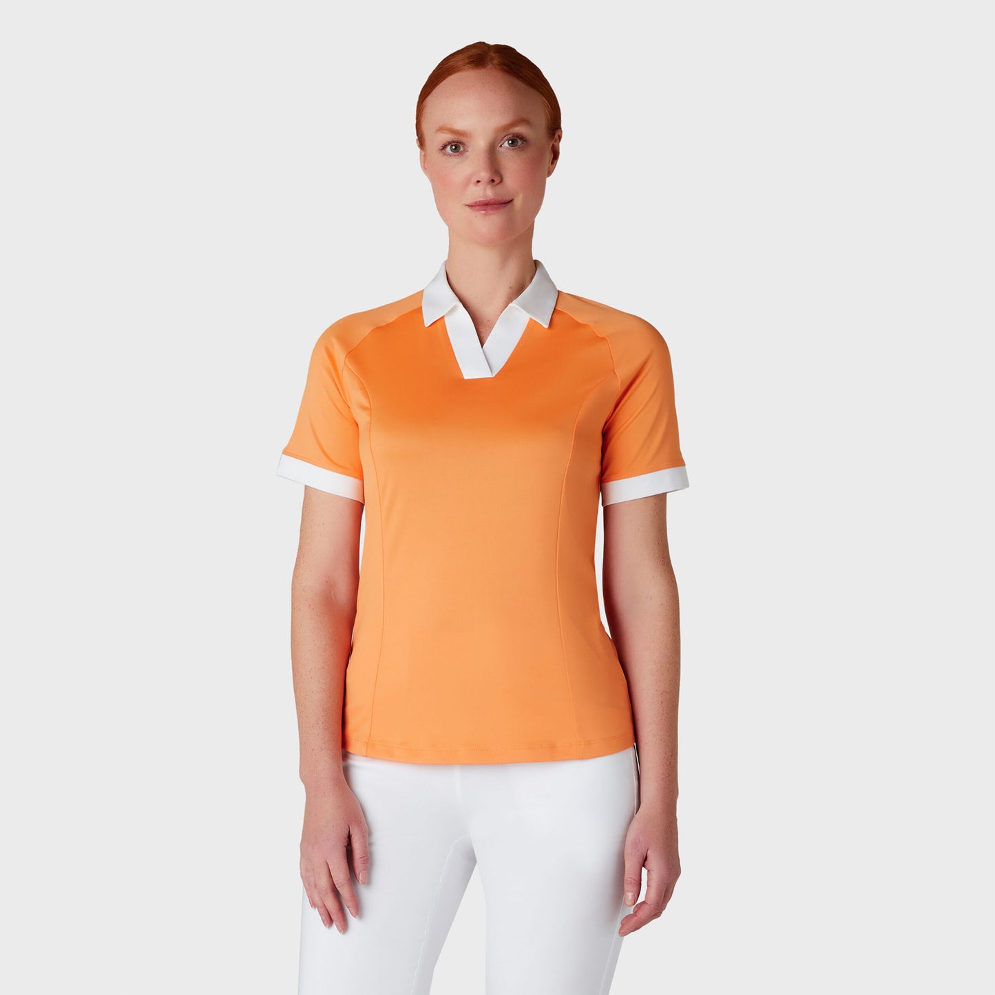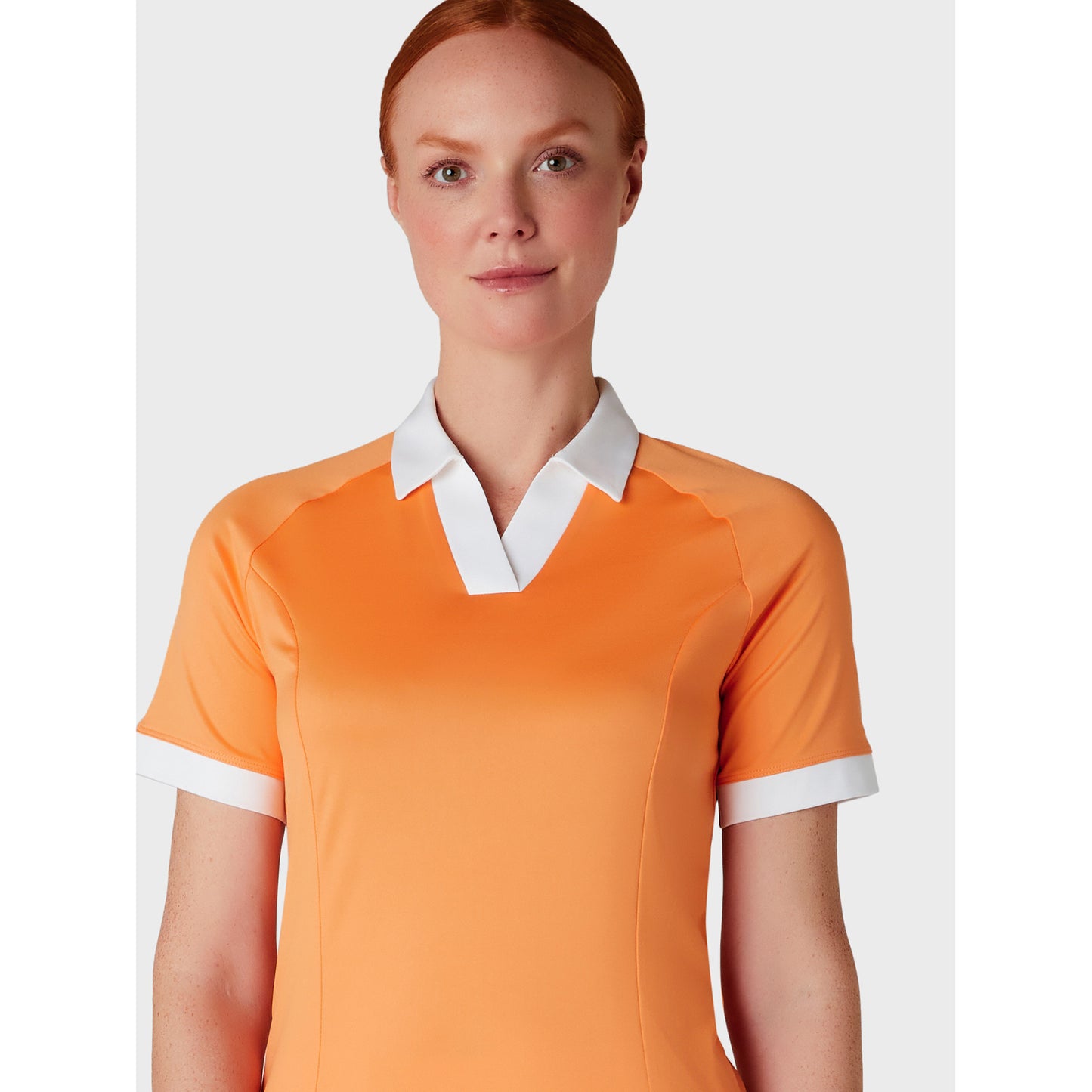 Callaway Dames Korte Mouw Colour Block Golf Polo in Papaya