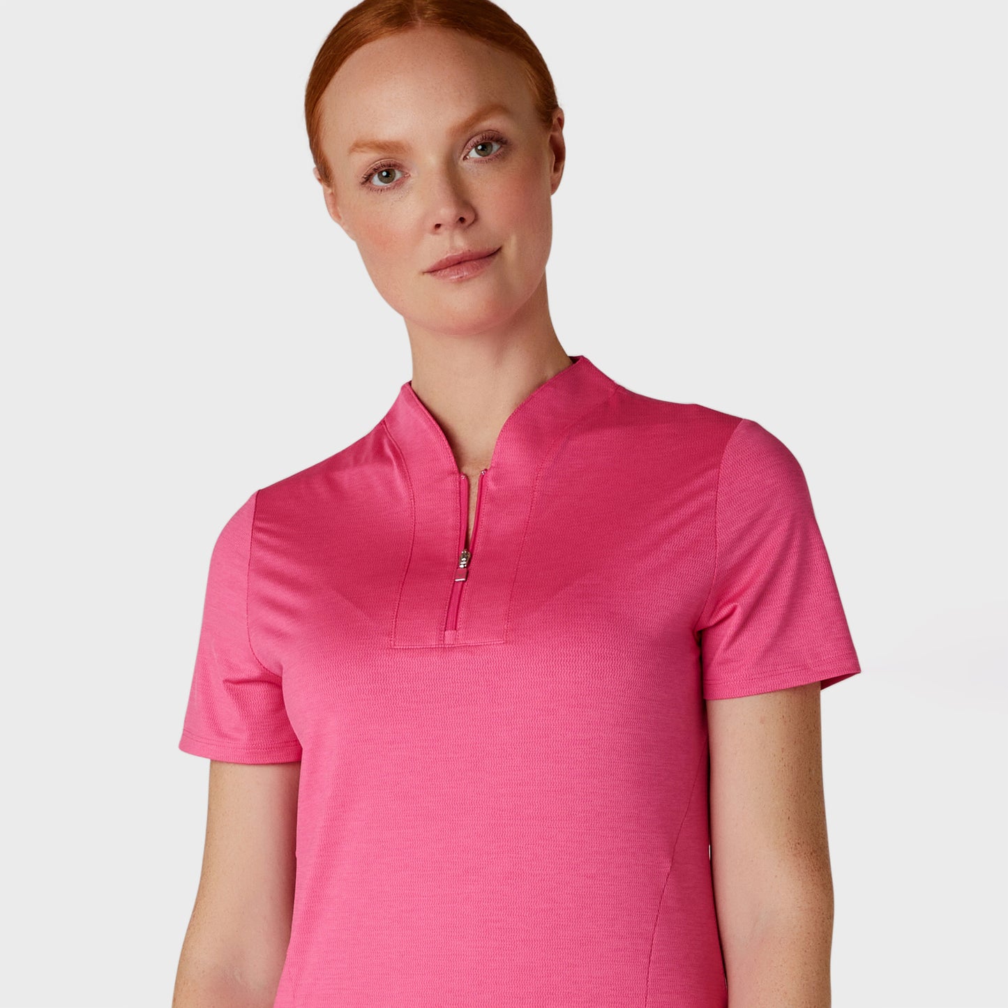 Callaway Dames Tonal Textured Golf Polo in Roze Pauw met Ritssluiting