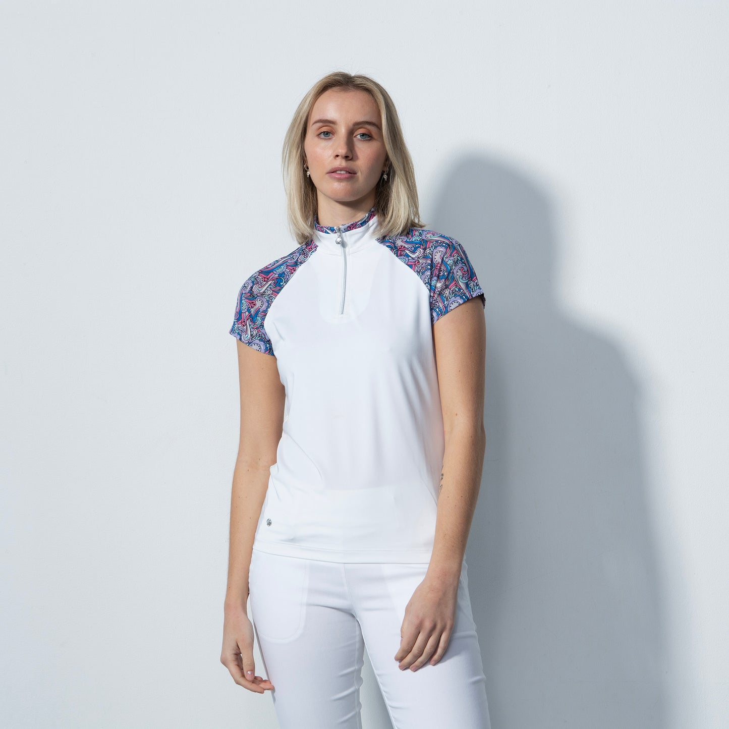 Daily Sports Dames Polo met Cap Sleeve in Wit met Paisley Print Mesh Mouwen