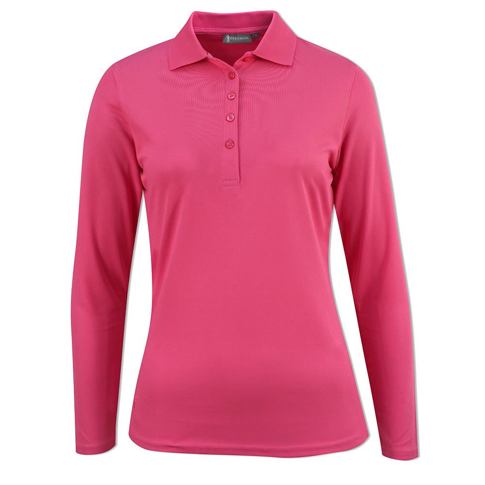Glenmuir dames piqué gebreide polo met lange mouwen en stretch in felroze