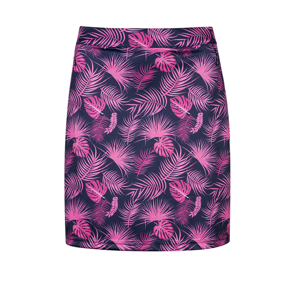 - 'Emeli' skort in marineblauwe en felroze tropische print; meet ongeveer 19"/48,5 cm van taille tot zoom