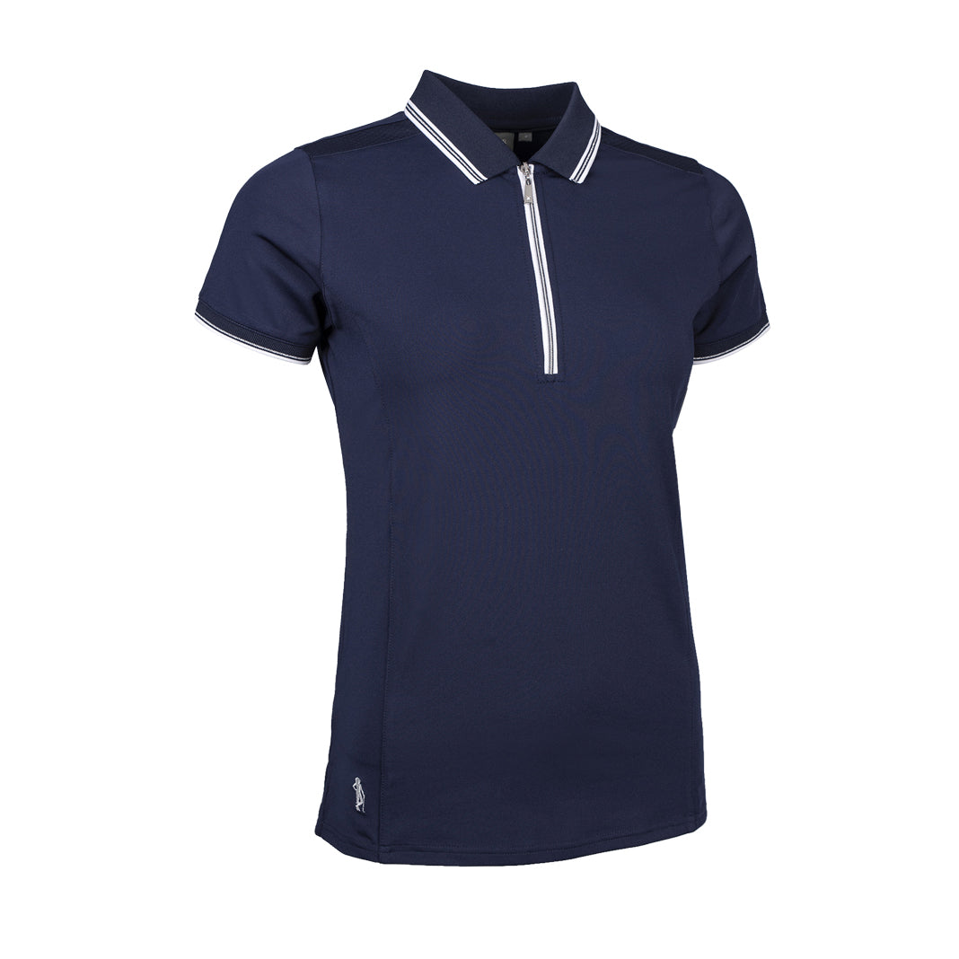 Glenmuir Dames Polo met korte mouwen en rits in marineblauw en wit
