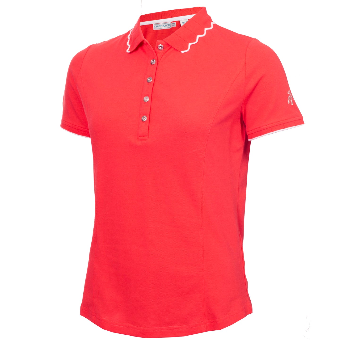 Groene lam dames polo met korte mouwen en geschulpte kraag in klaprooskleur