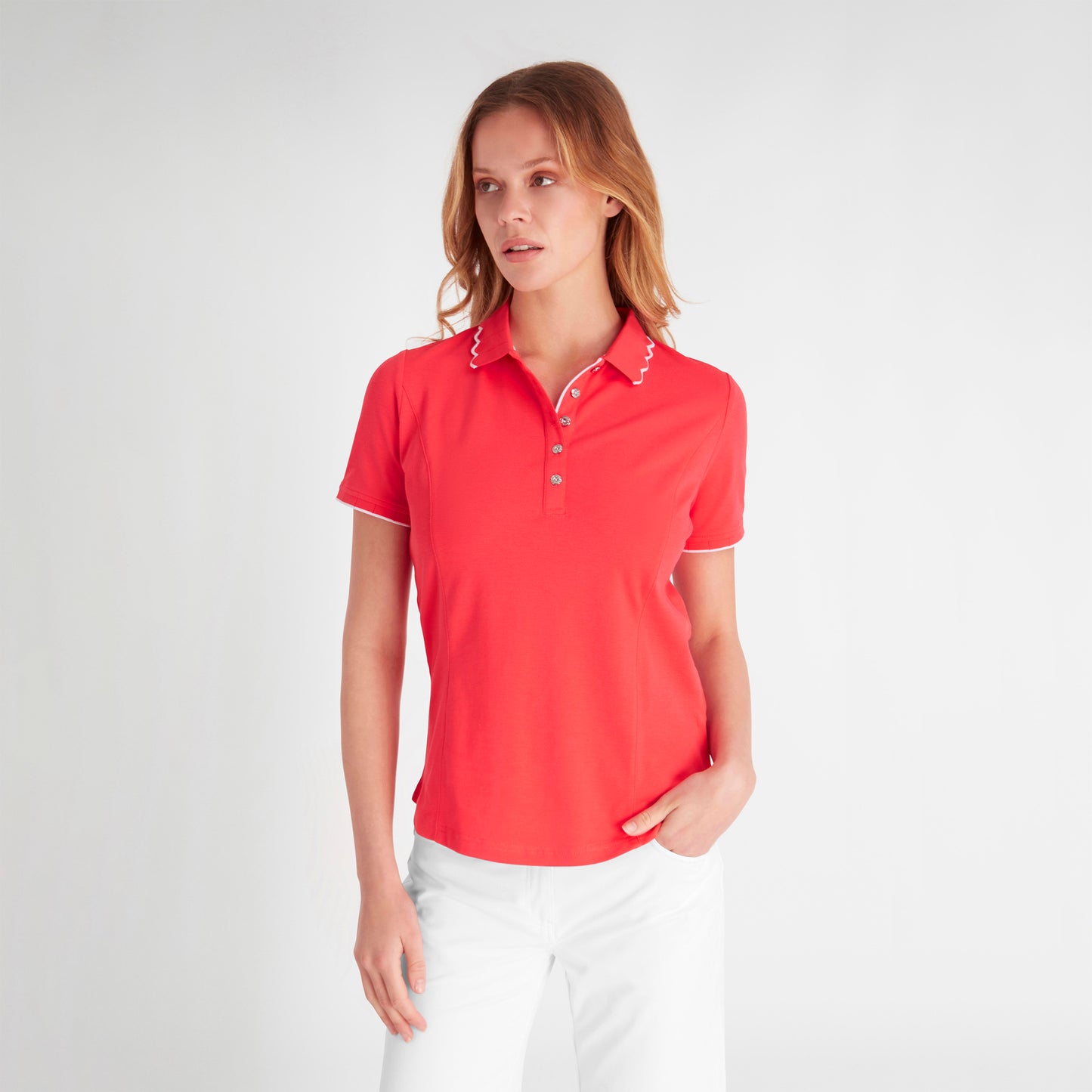 - 'Nadeen' Club polo met korte mouwen in 'Poppy'