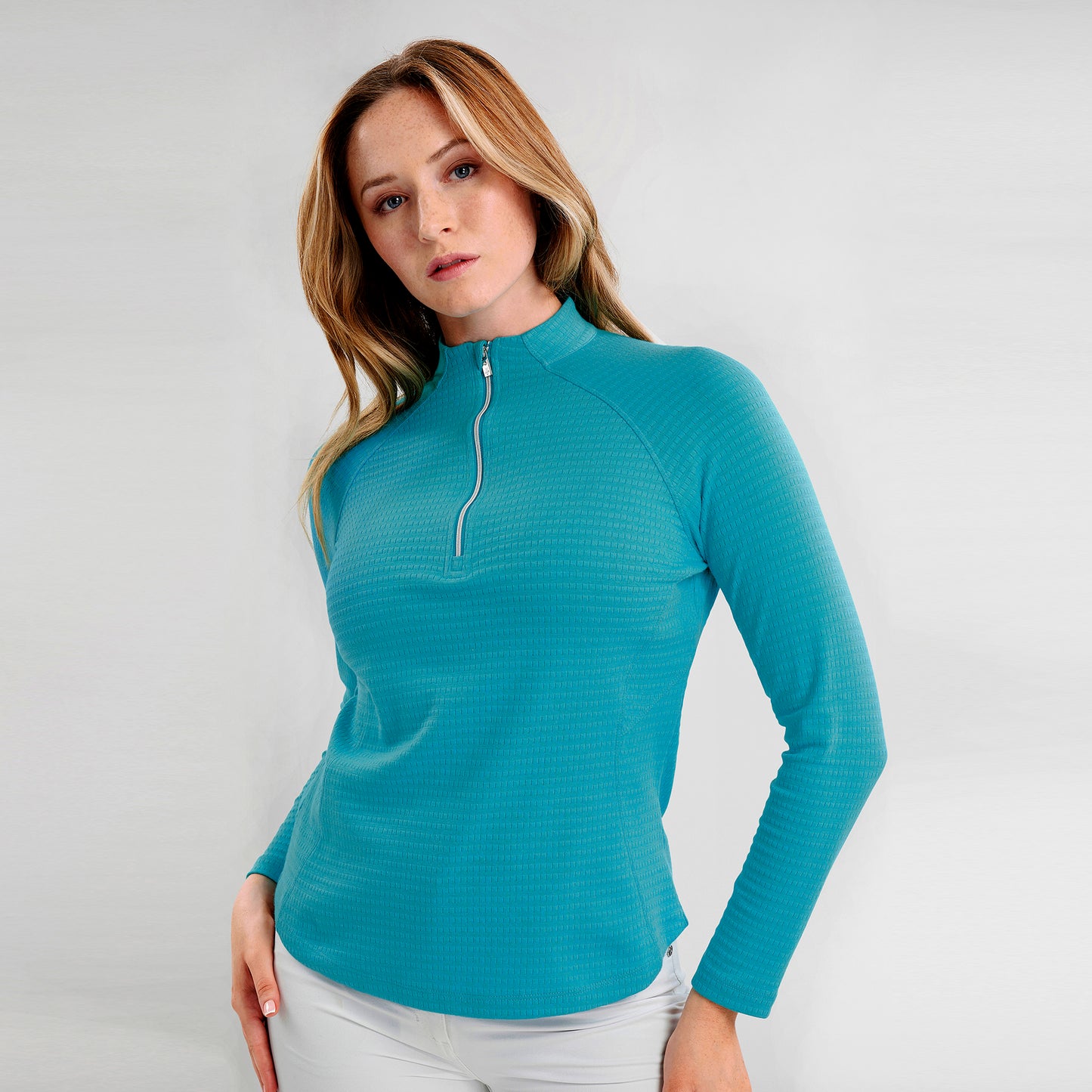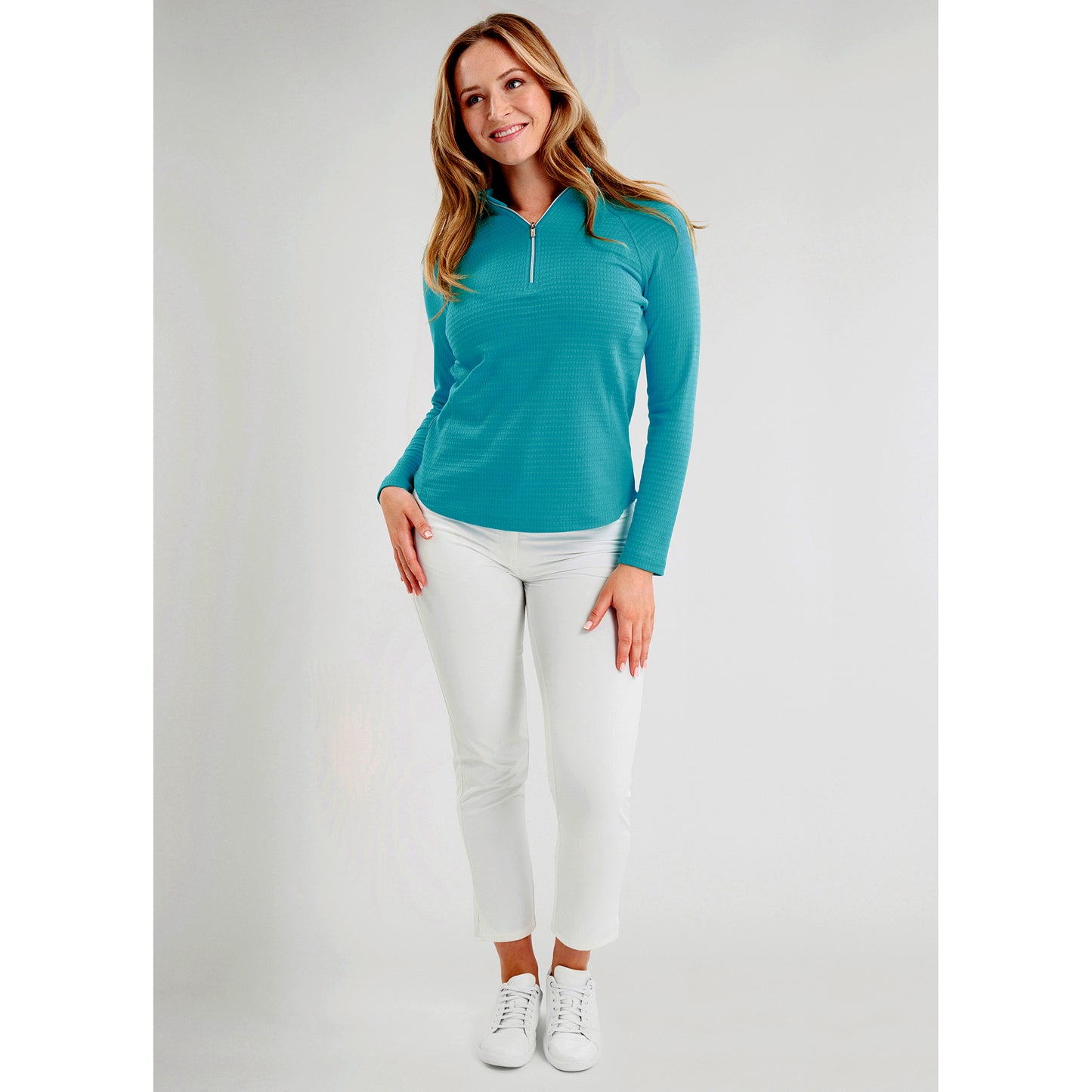 - "Olive" Top met lange mouwen in levendig 'Peacock Blue'