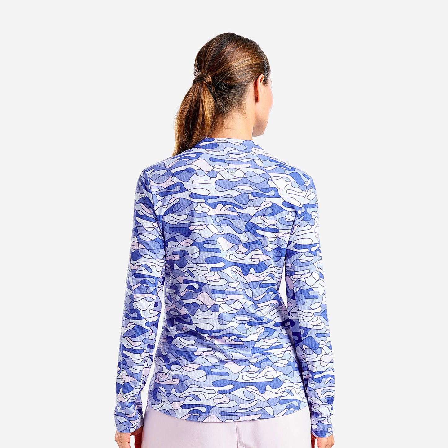 Nivo Ladies Long Sleeve Mock Collar Golf Top with Abstract Wave Print