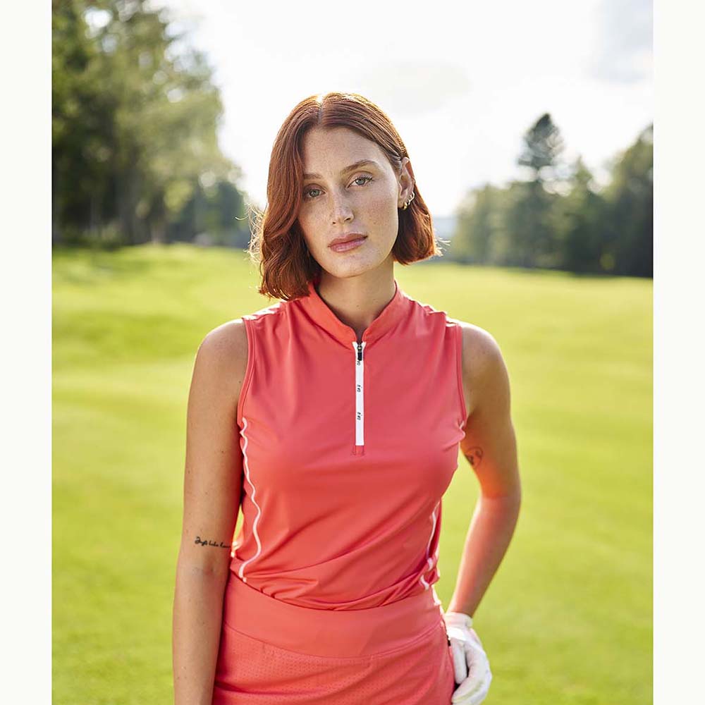 Nivo Dames Sportief Mouwloos Polo in Papaya Rood
