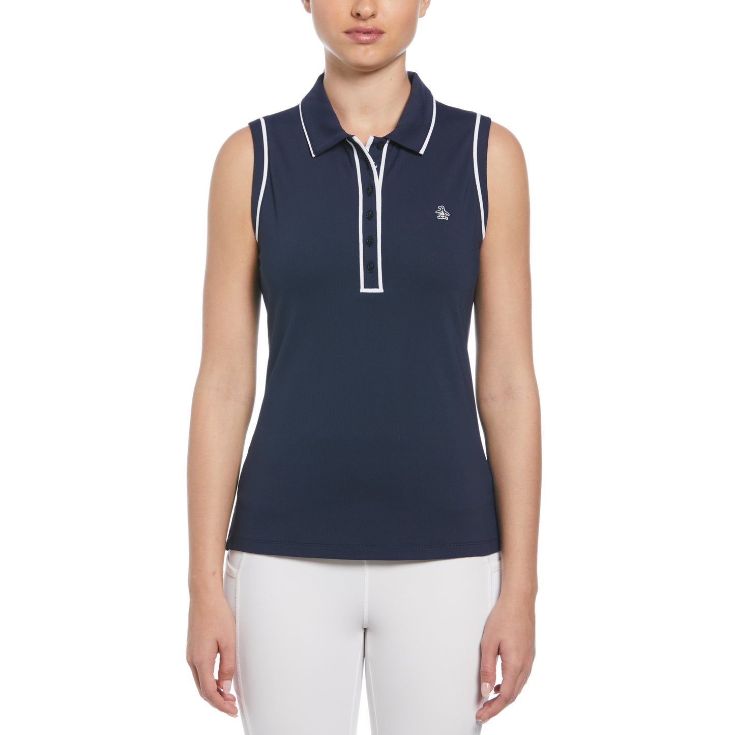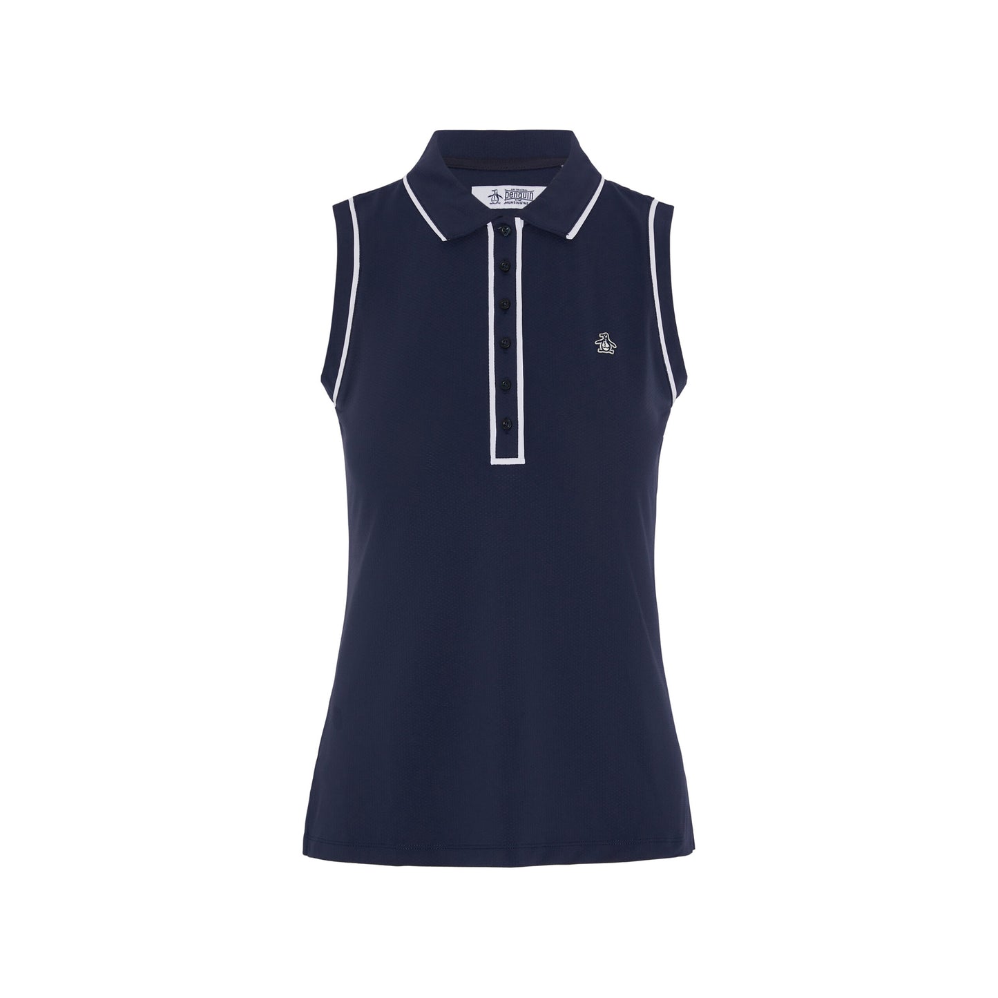 Originele Penguin dames mouwloze polo met contrasterende bies in marineblauw