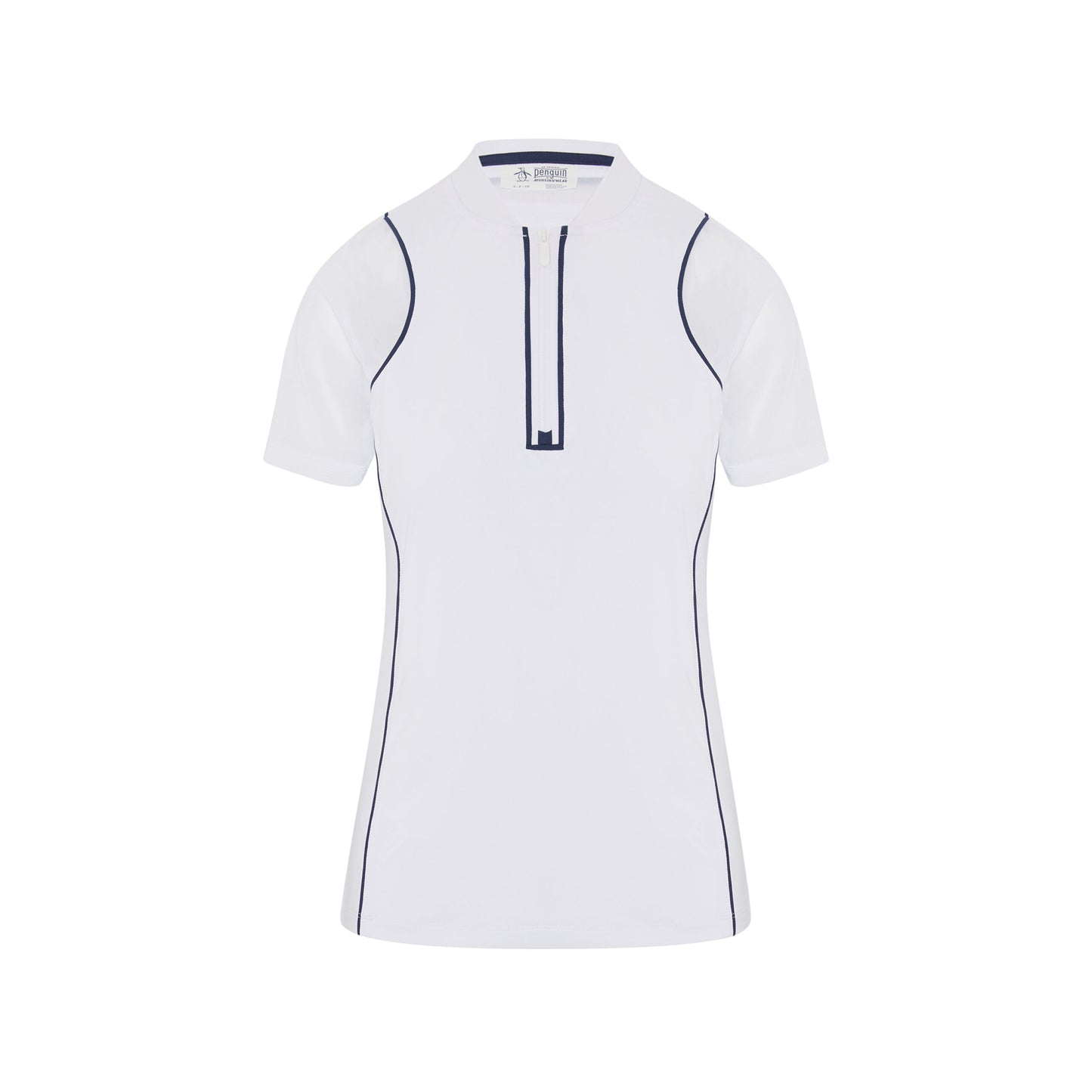 Originele Penguin Dames Felwit Zip-Neck Korte Mouw Polo Met Mesh