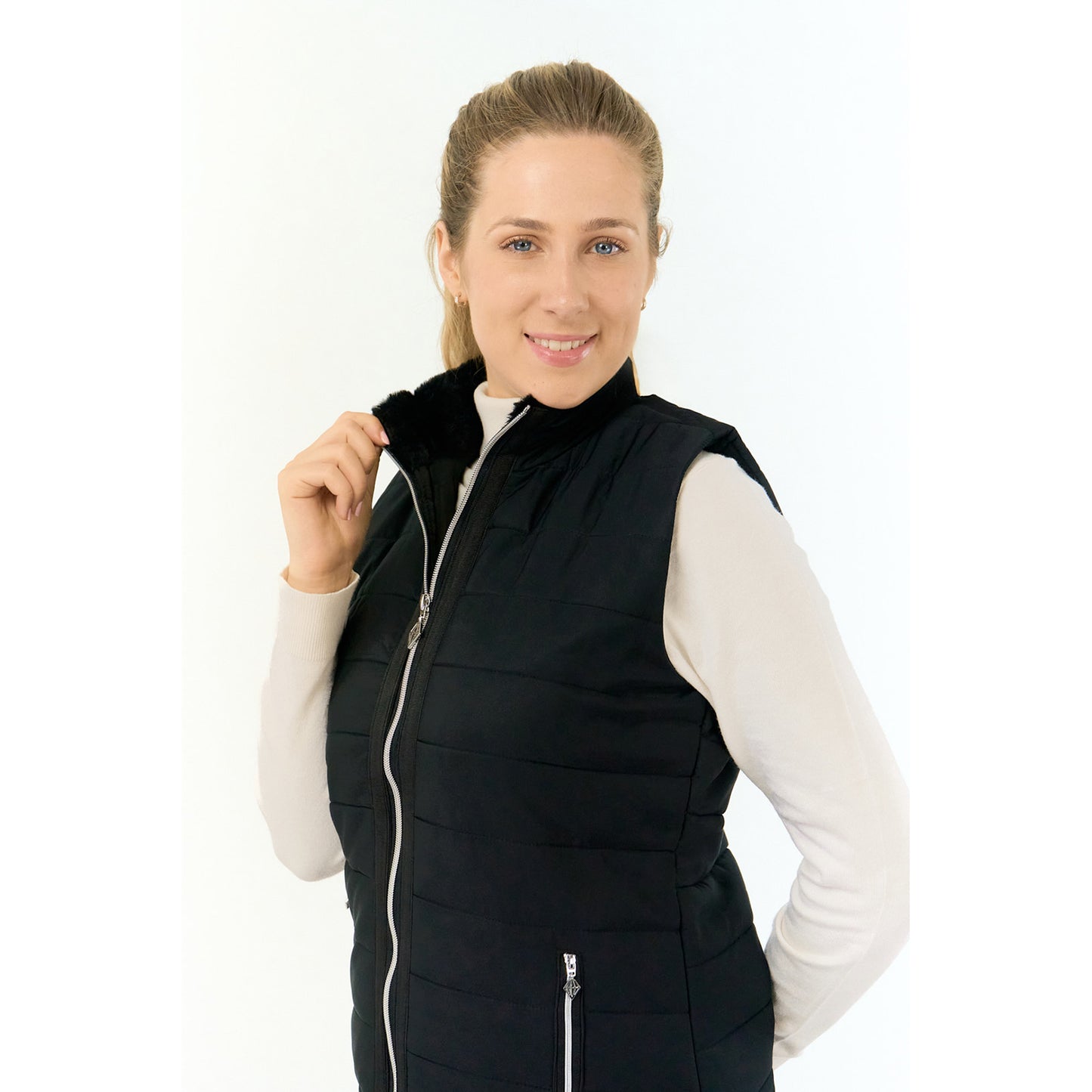 Pure Golf Dames Gilet in Zwart met Kunstbontkraag