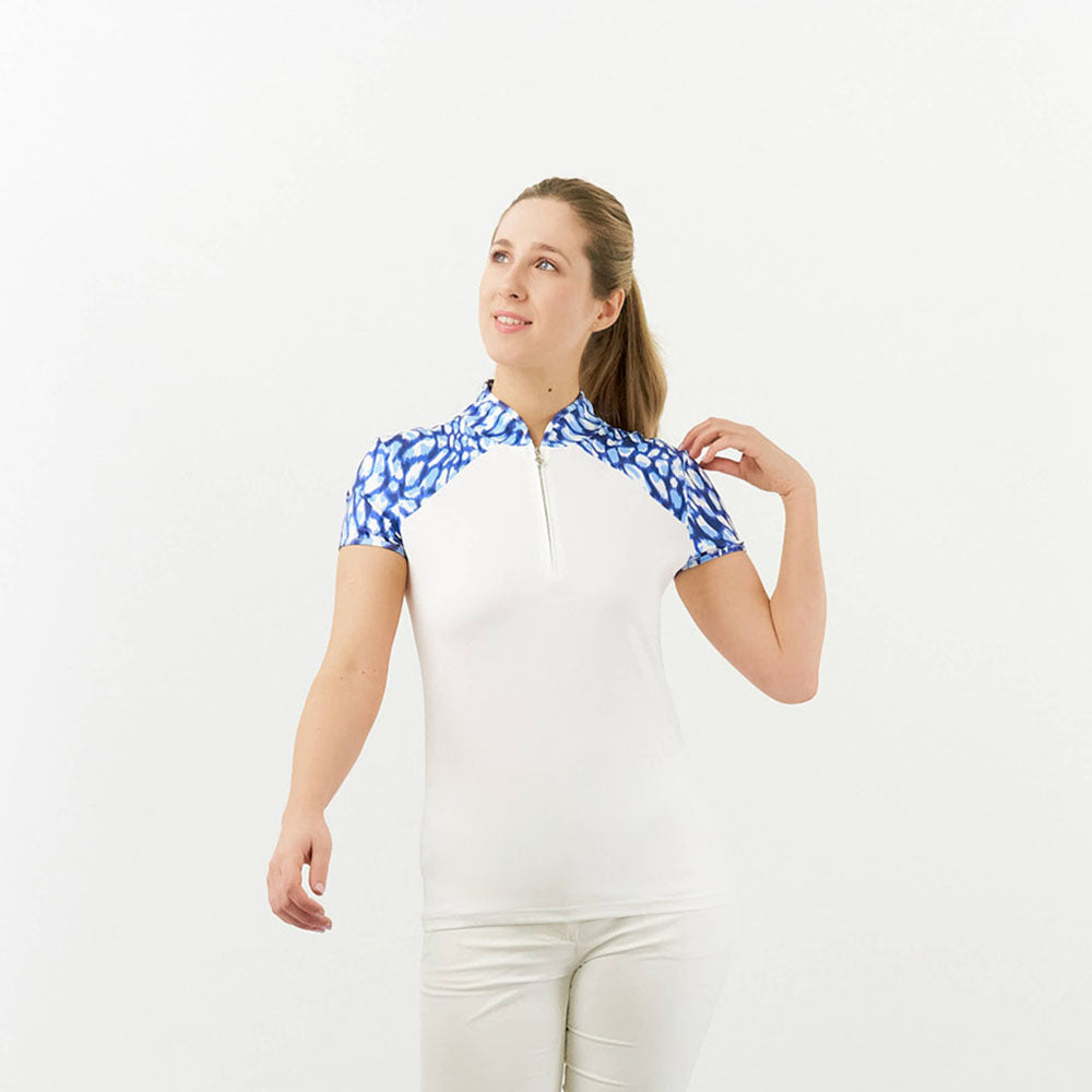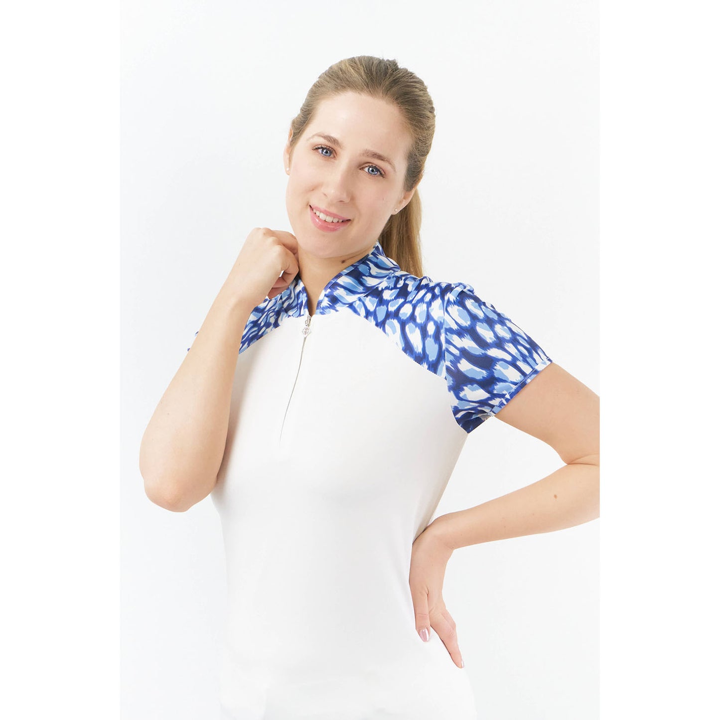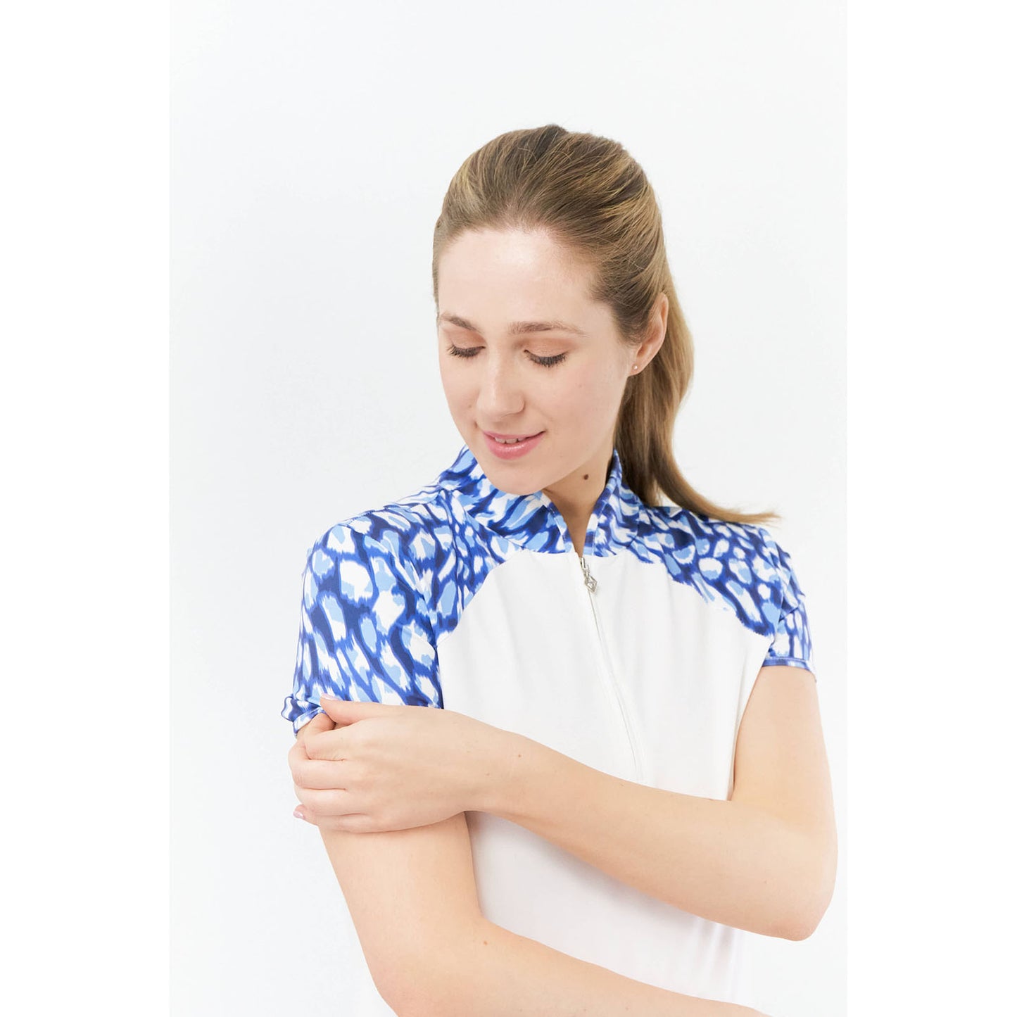 - 'Spirit' polo met kapmouw in het wit met 'Leopard Lake'-print