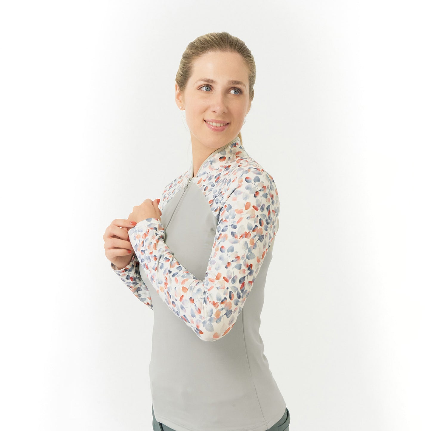 - 'Maple' top met lange mouwen en geborstelde achterkant in lichtgrijs en 'Autumn Embers'