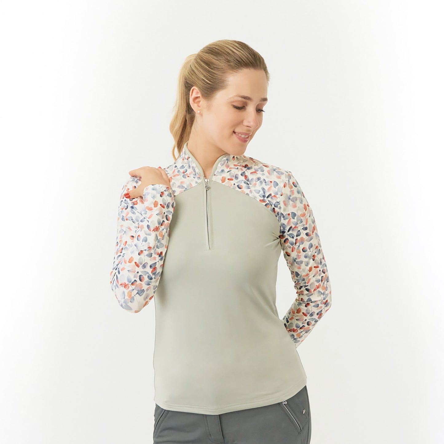 Pure Dames Golftop met lange mouwen en geborstelde achterkant en rits
