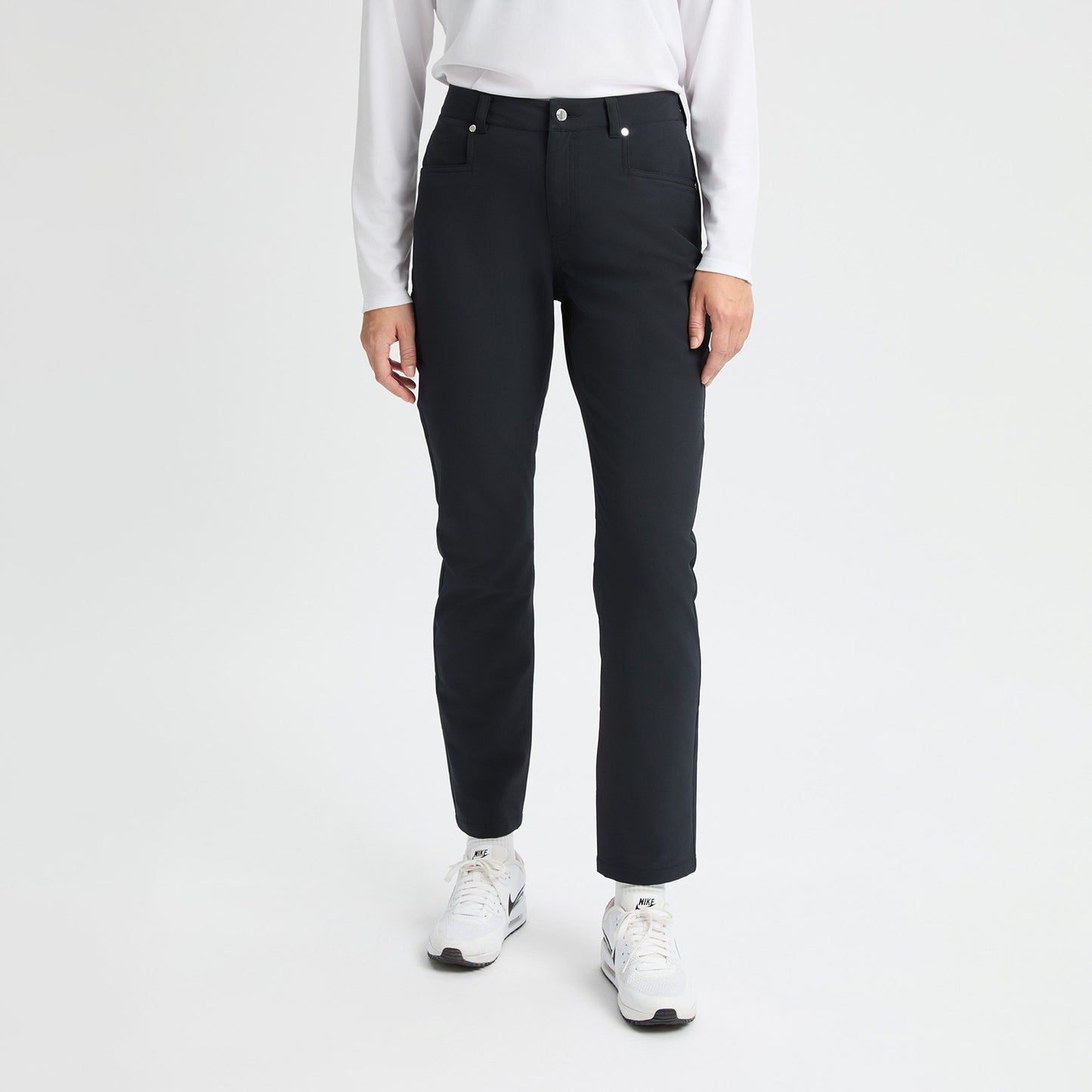 Blijf fairway fantastisch met deze ultra-chique zwarte golfbroek van Rohnisch. De zachte, rekbare twillstof met geborstelde binnenkant zorgt voor warmte en comfort ronde na ronde, terwijl de slanke pijpen uw vrouwelijke vormen benadrukken. Ze zijn serieus stijlvol en perfect om een verfijnde touch aan uw garderobe toe te voegen - op en naast de baan!
