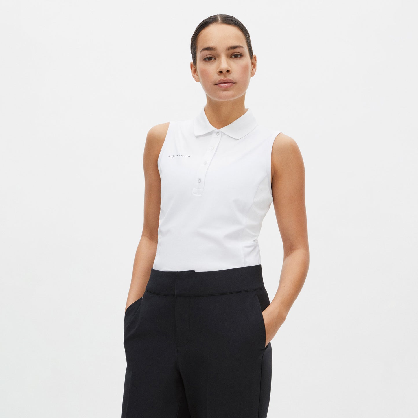 Rohnisch Dames Wit Mouwloos Polo met Gestructureerde Panelen - Laatste Grote Alleen Over