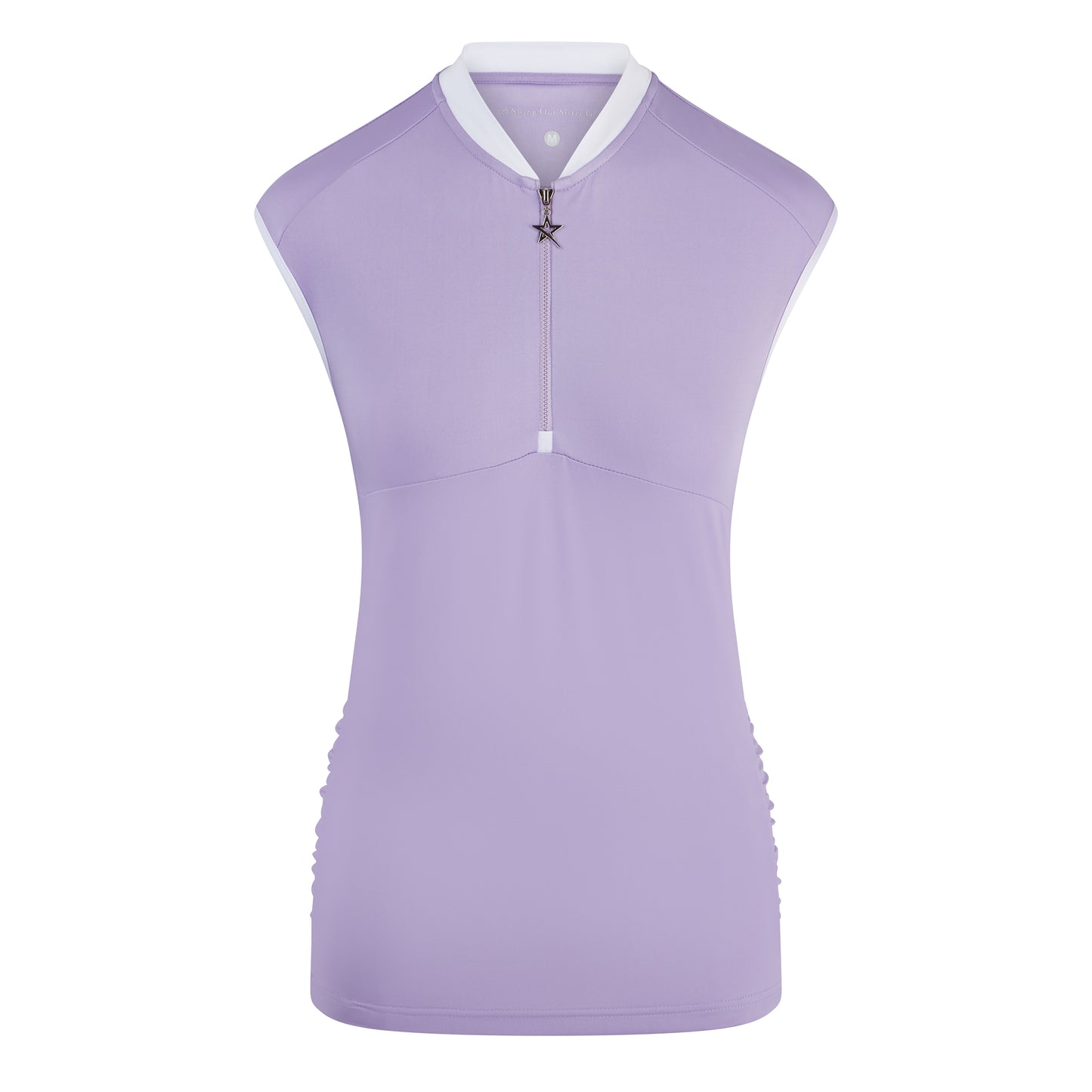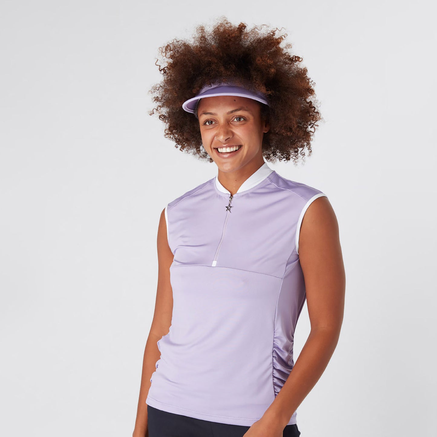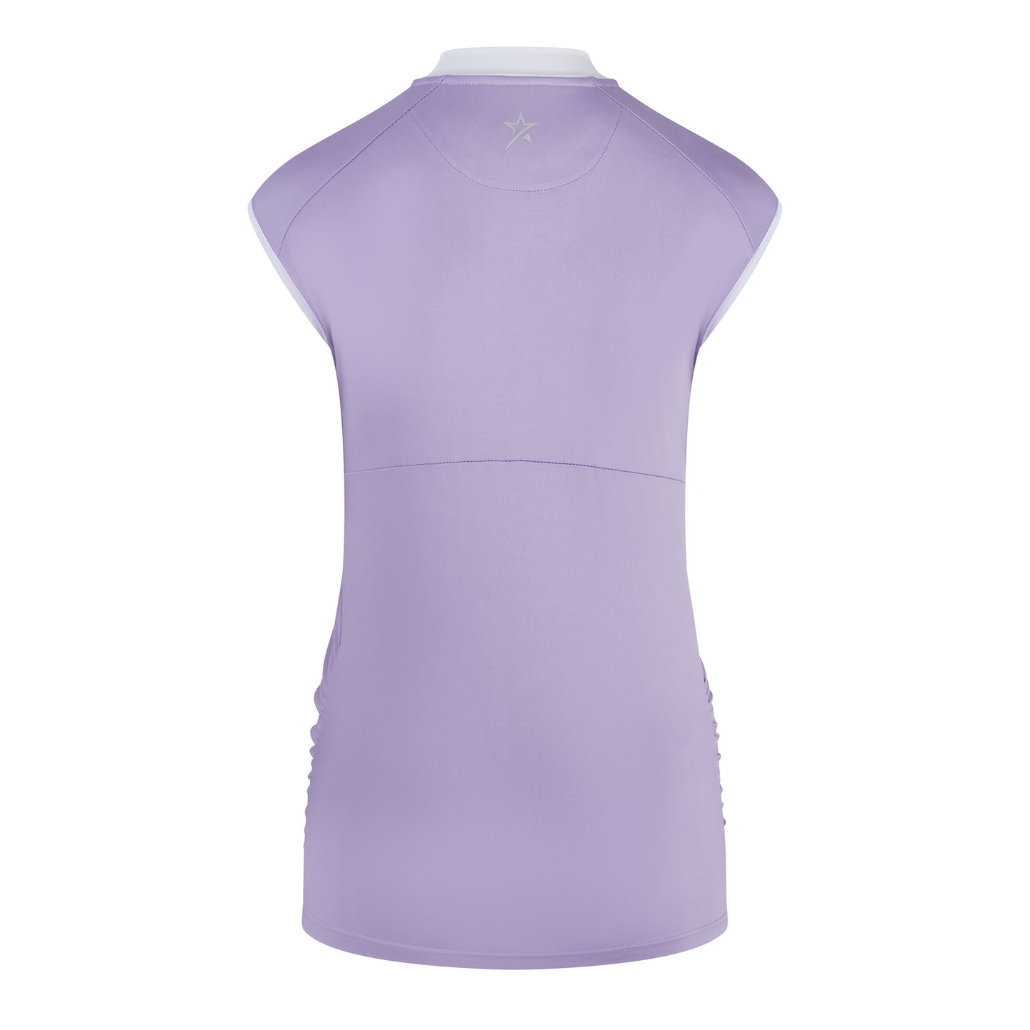 Swing Out Sister damespolo met kapmouwen en ruches in digitale lavendel