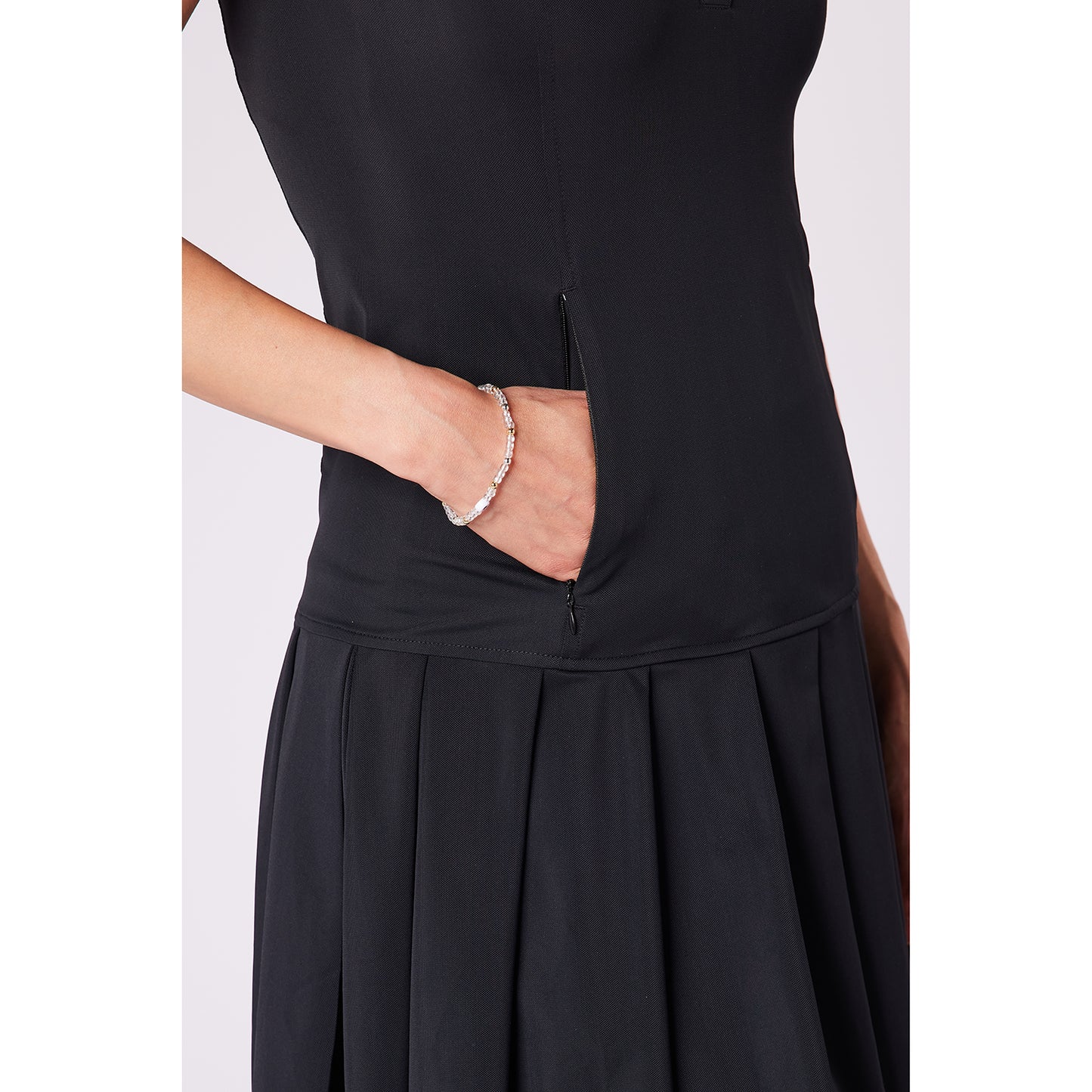 Swing Out Sister Ladies Sleeveless Drop Waist Pleated Golf Dress in Black