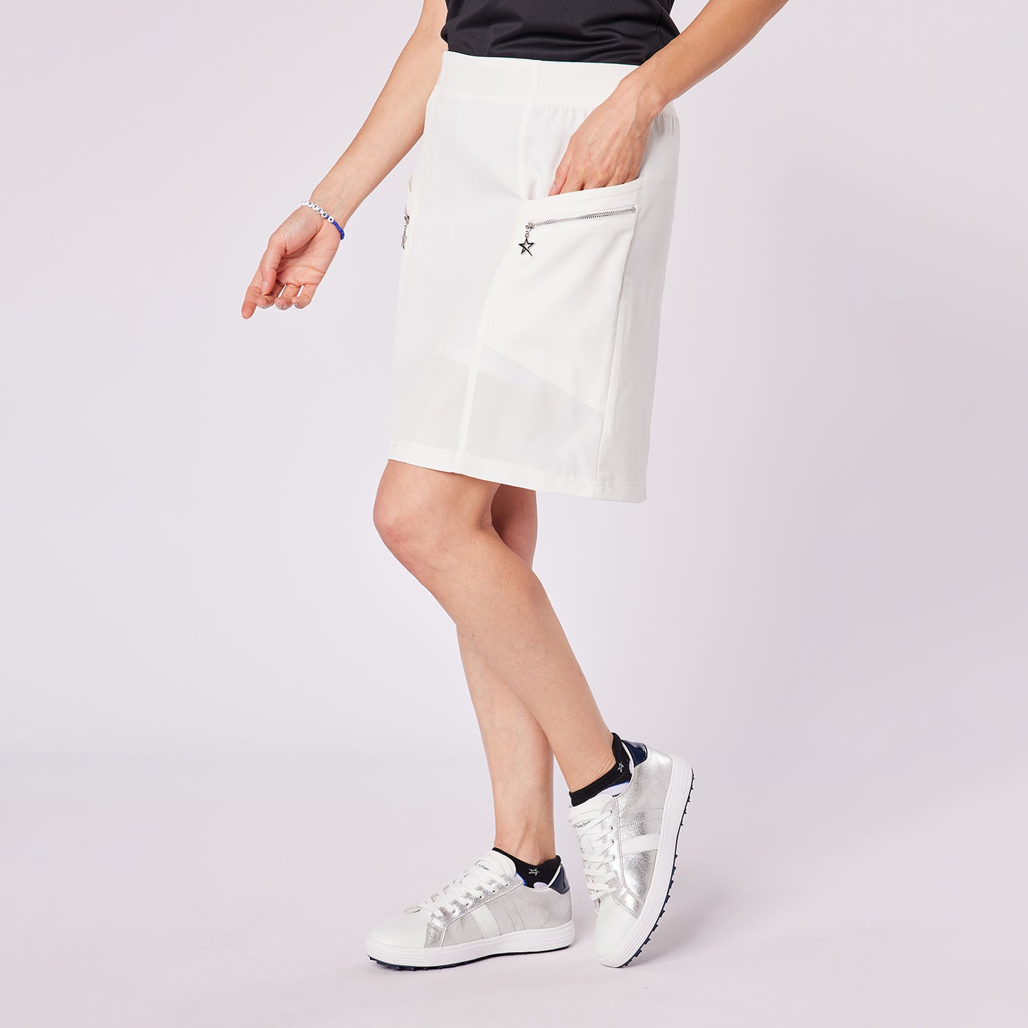 Swing Out Sister Ladies Lightweight Pull-On Skort with Silver Pocket Detail