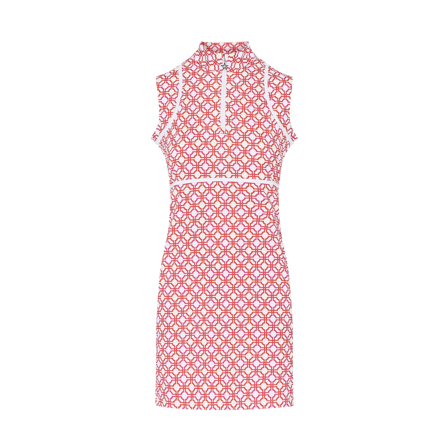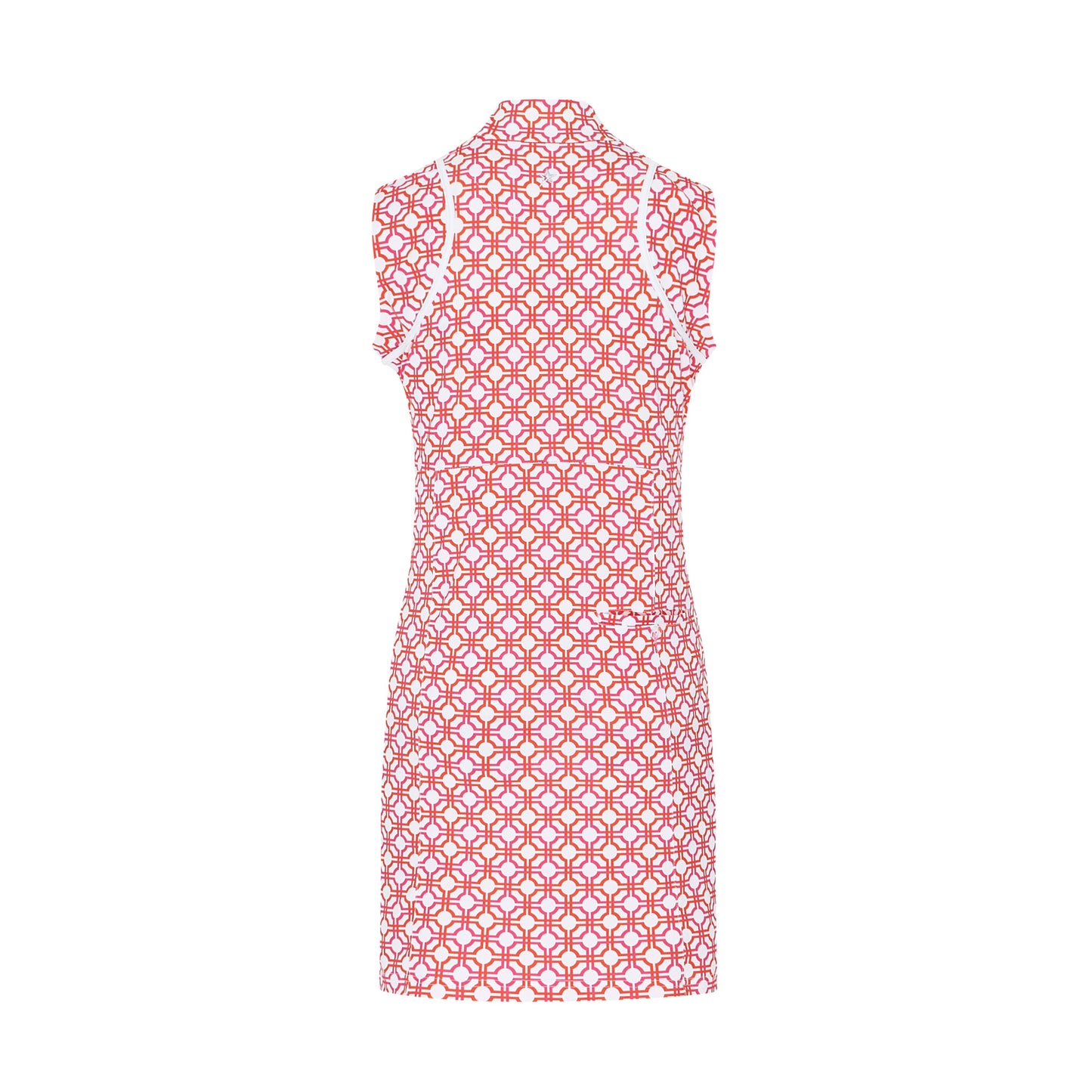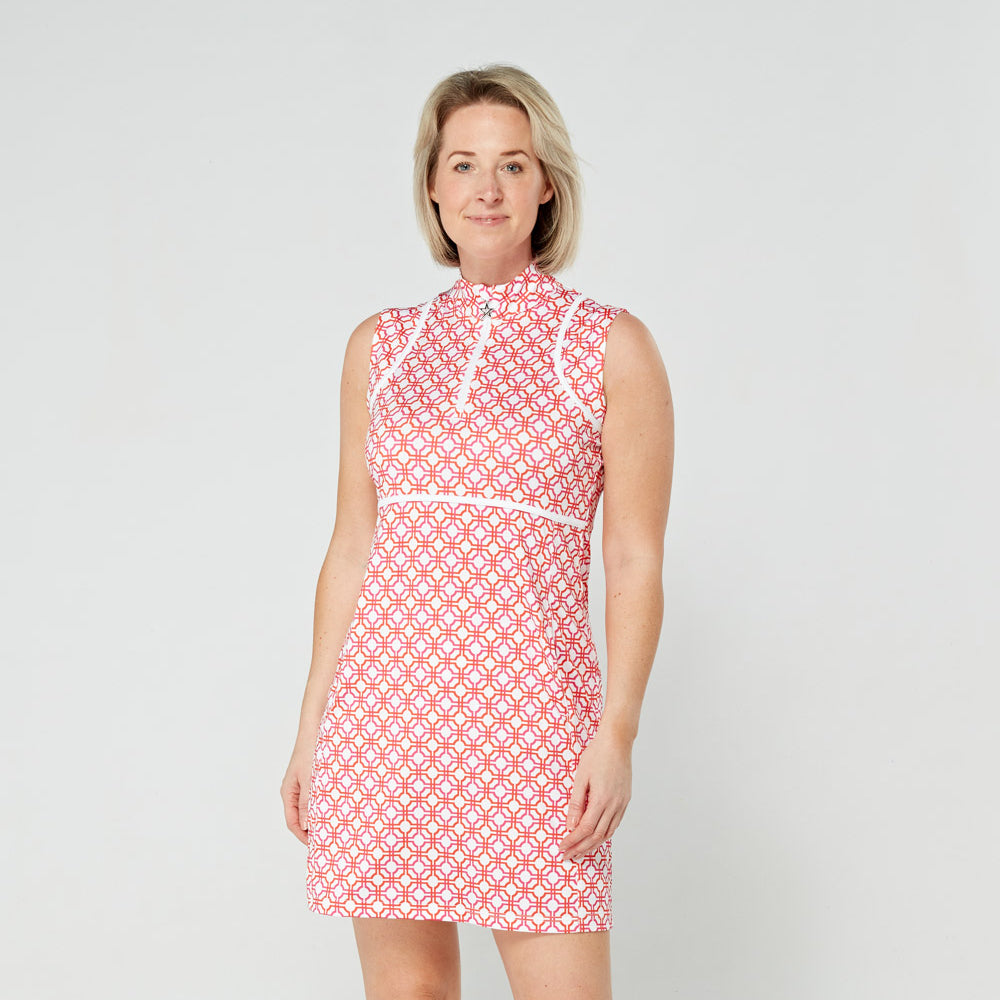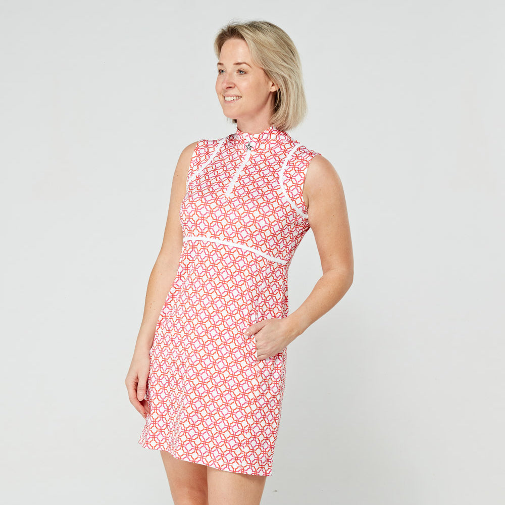 Swing Out Sister Dames Mouwloze Golfjurk in Weelderig Roze en Mandarijn Mozaïekpatroon