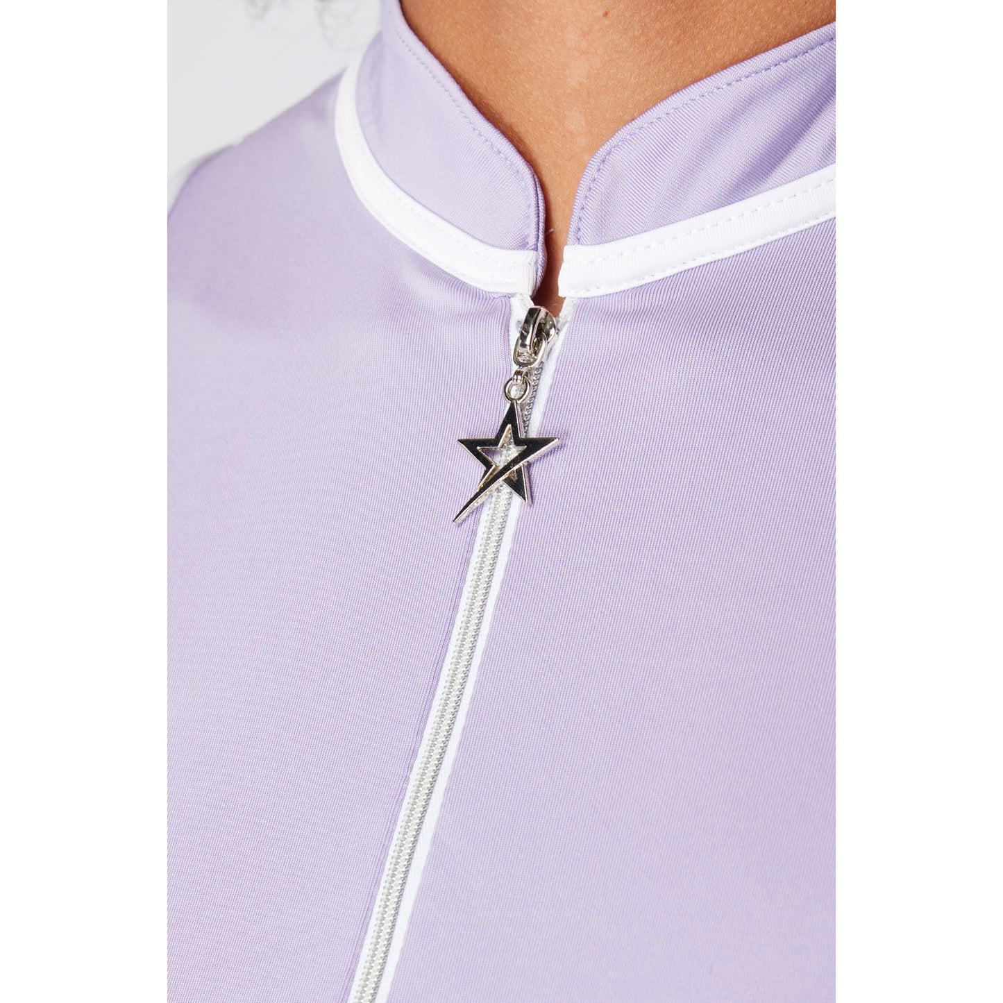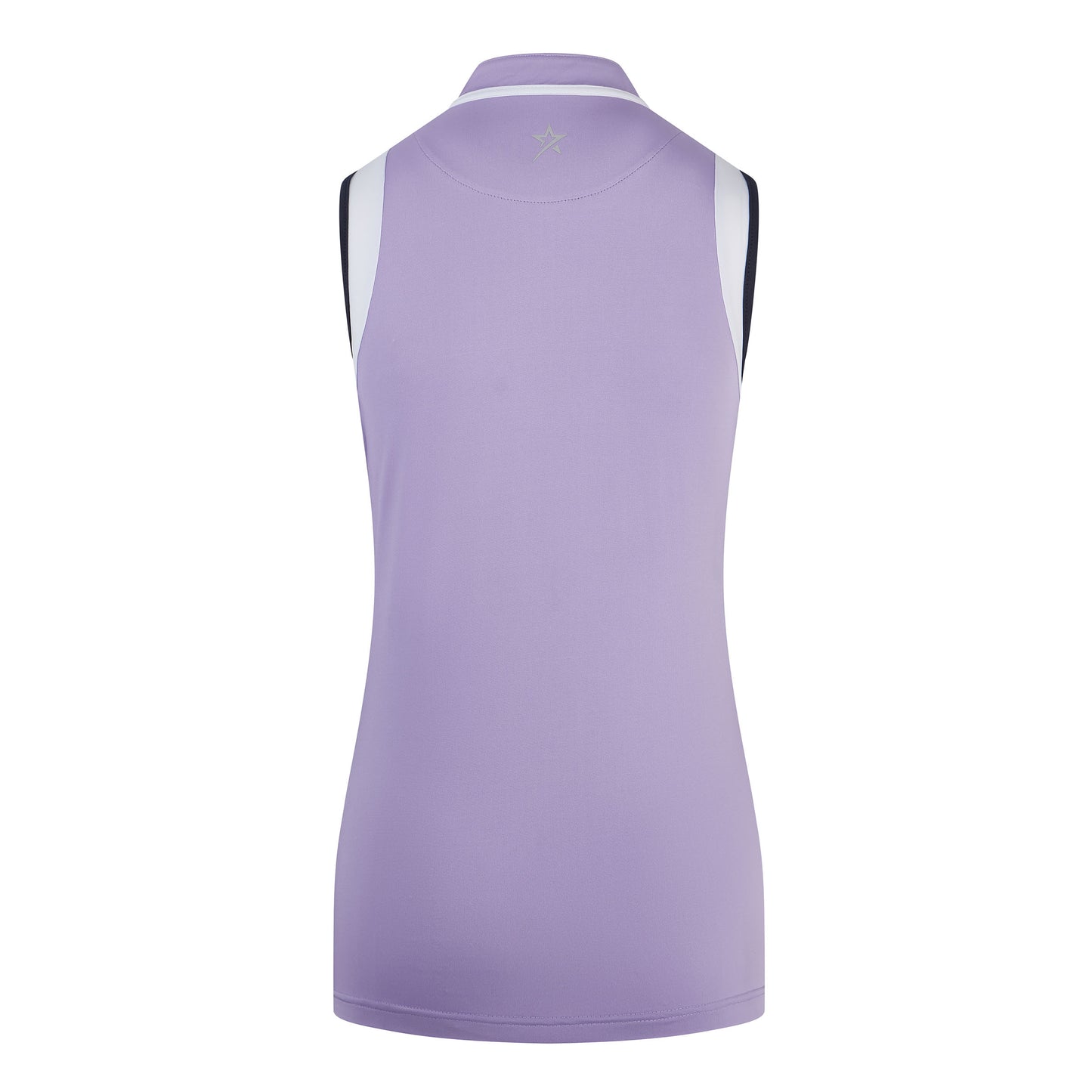 Maak je klaar voor plezier in de zon met deze prachtige mouwloze polo van Swing Out Sister. Ontworpen in een mooie lavendelkleur met contrasterende marineblauwe en witte biesdetails rond de armsgaten. De zilveren ritshals voegt een vleugje glamour toe, wat leidt tot een mini-mandarijnkraag die ook is afgezet in het wit voor een modieuze afwerking. Gestyled met een normale pasvorm, met 4-way stretchstof voor extra comfort en de belangrijke SPF30 voor die warme dagen op de links.
