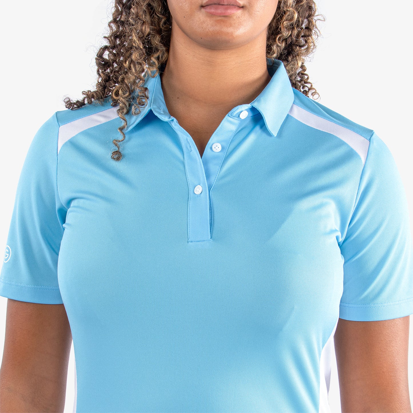 - "Mirelle" short-sleeved polo in 'Alaskan Blue' & white