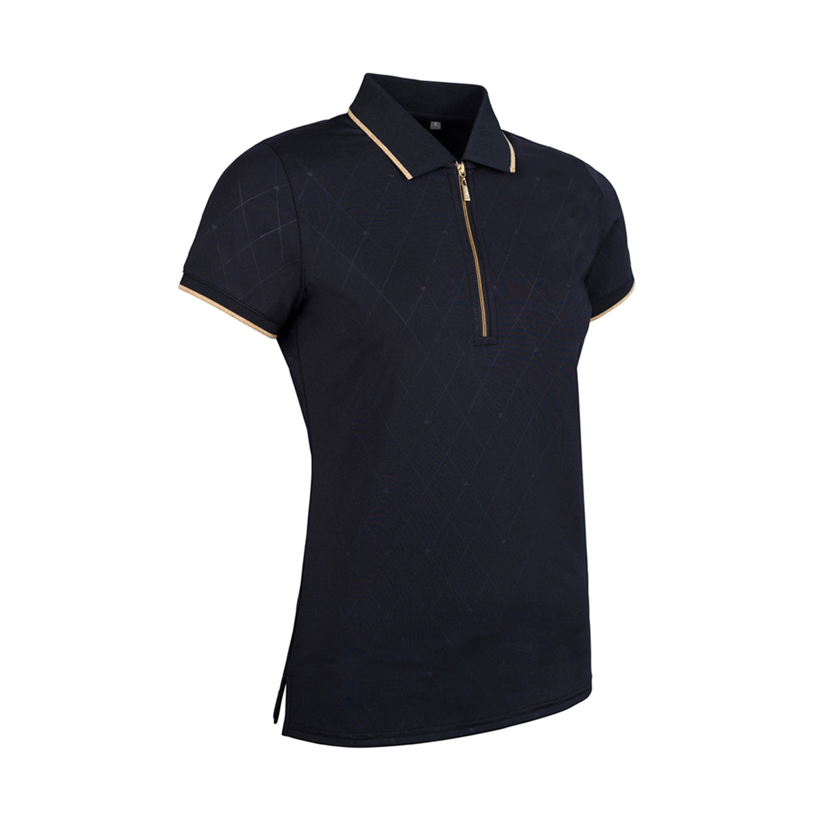 Glenmuir Ladies Black Short Sleeve Polo with Subtle Diamond Print