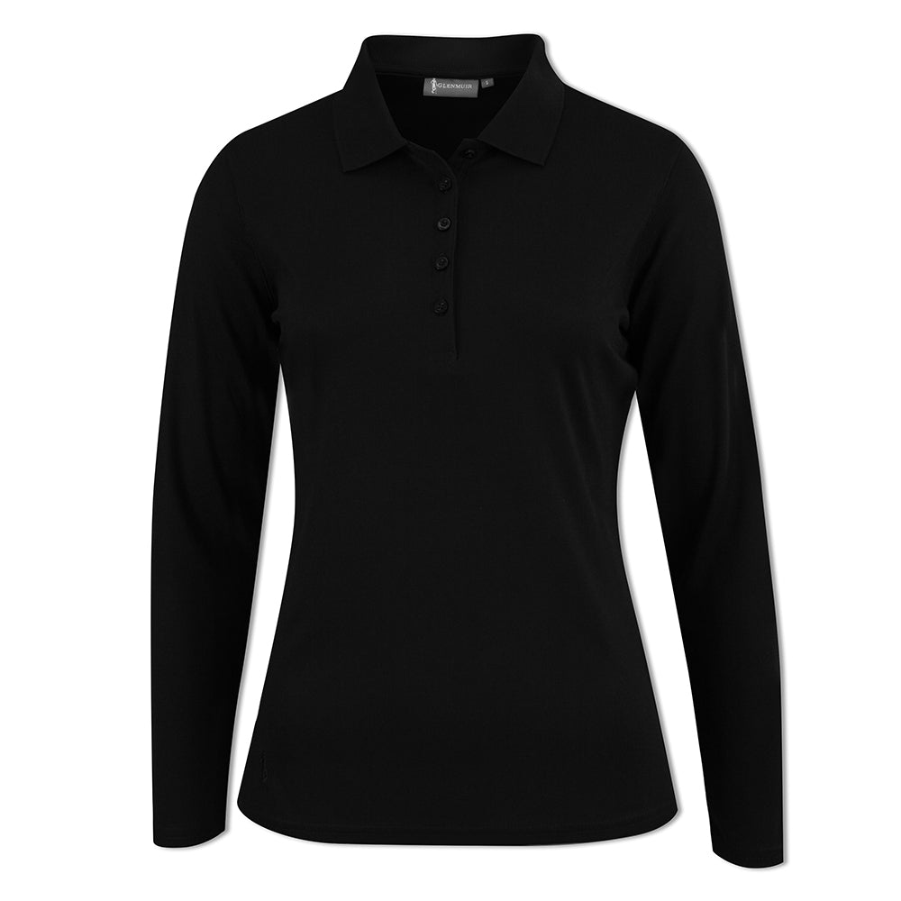 Glenmuir Ladies Long-Sleeve Pique Knit Polo with Stretch in Black