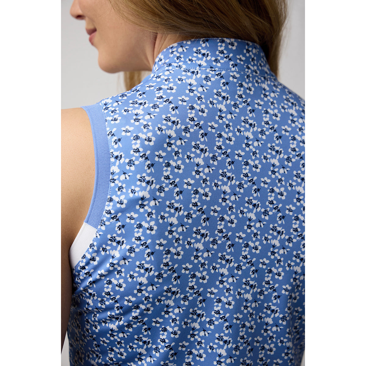 - 'Alice' performance sleeveless polo in white & light blue flowers