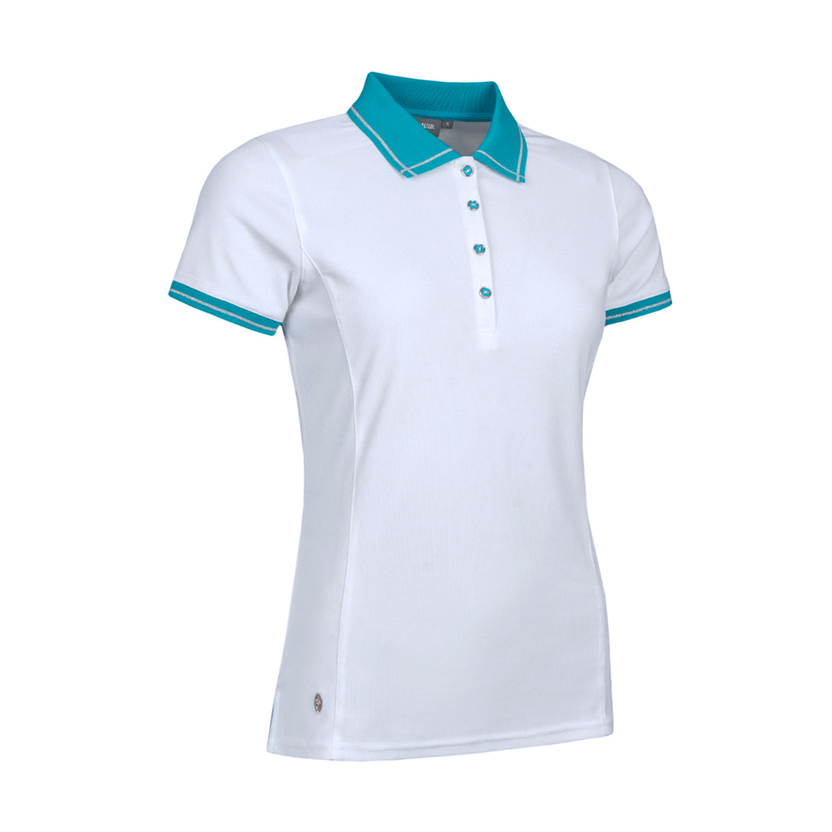- 'Zara' short sleeve polo in white & 'lagoon'