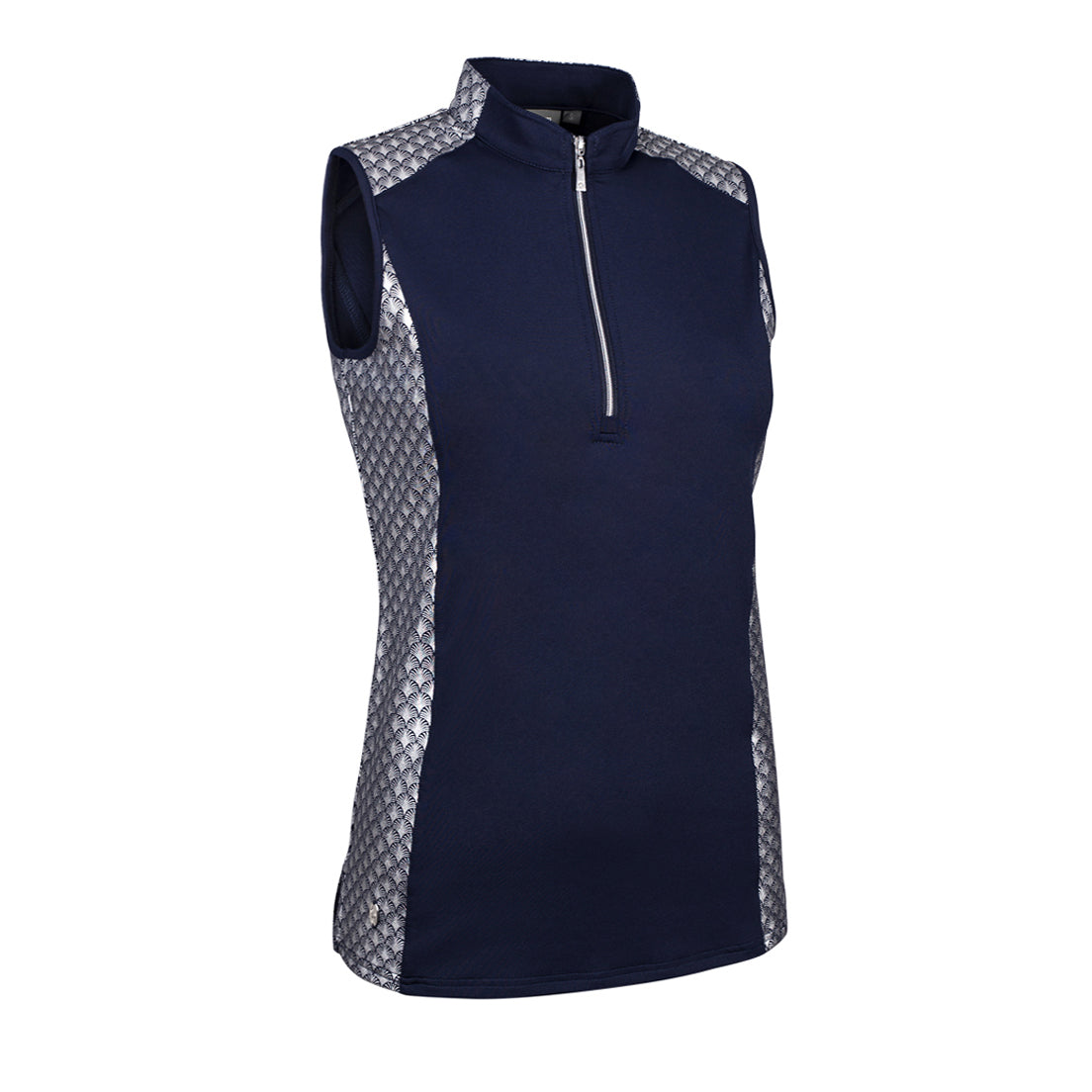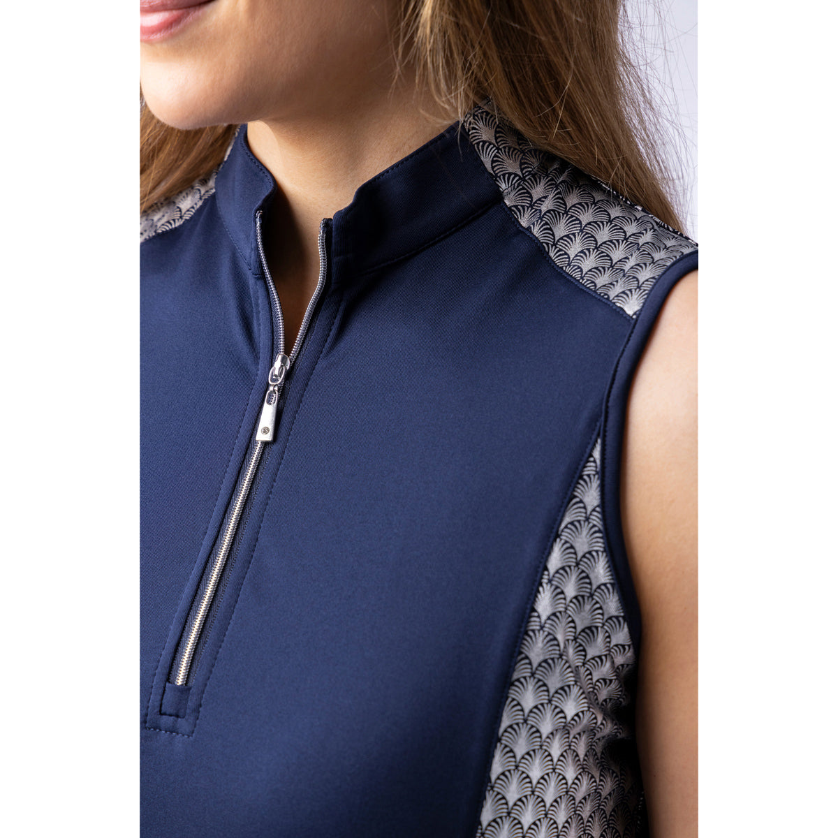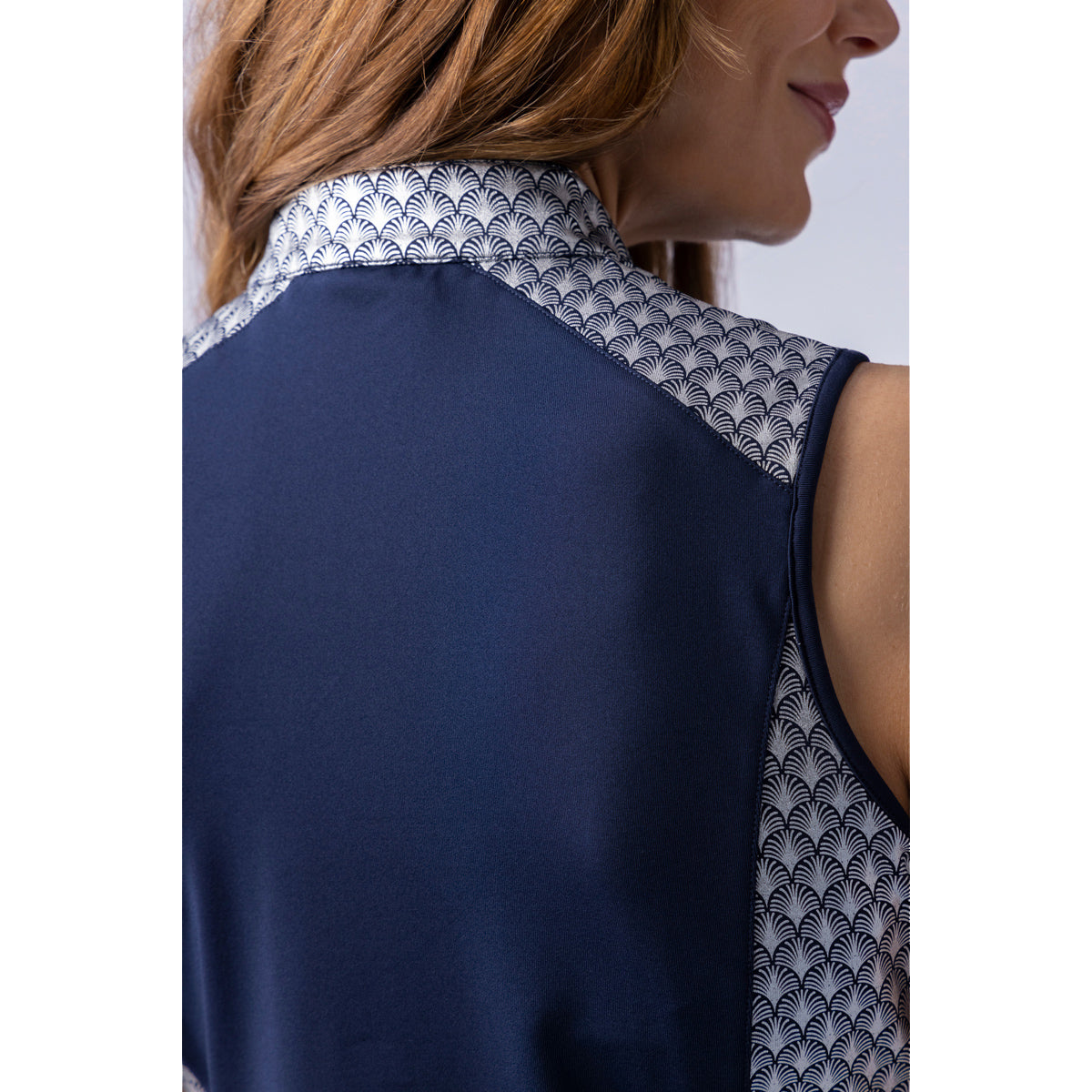 - 'Billie' performance sleeveless polo in navy blue & silver foil print