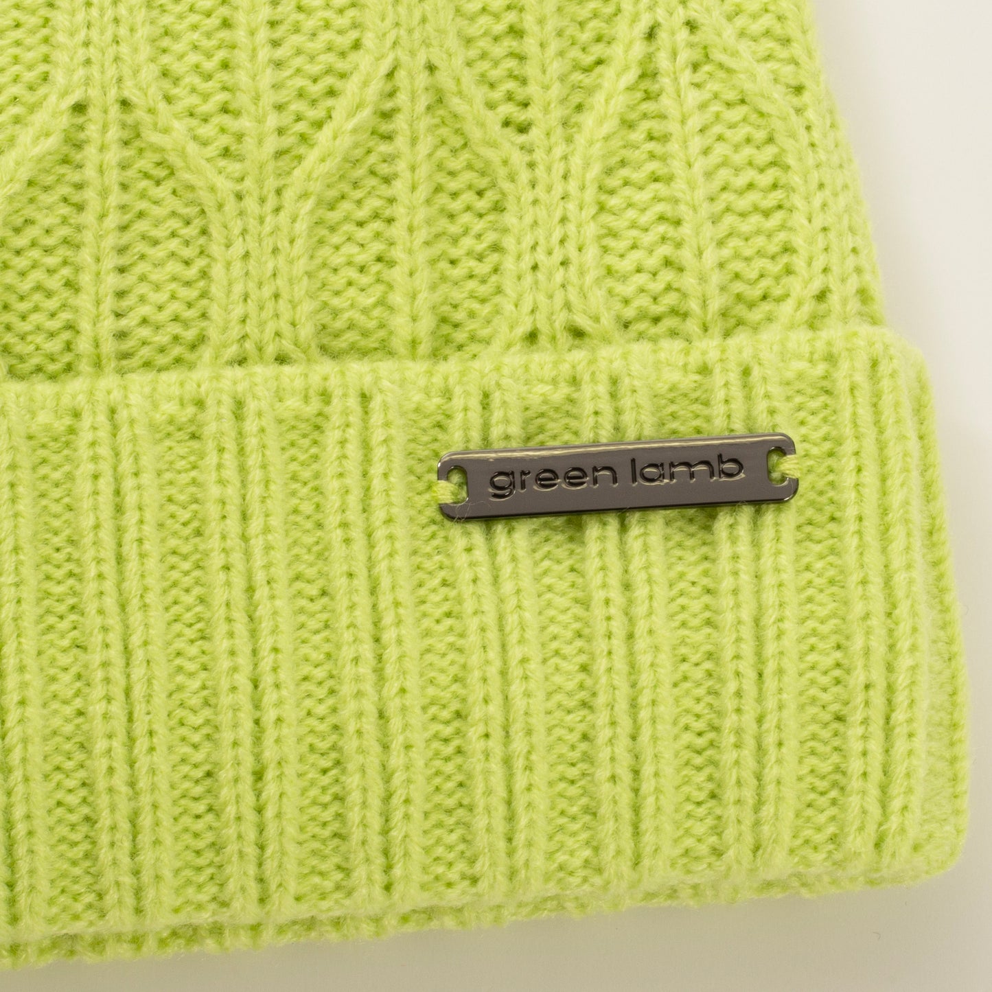 Green Lamb Ladies Fleece Lined Cable Knit Bobble Hat