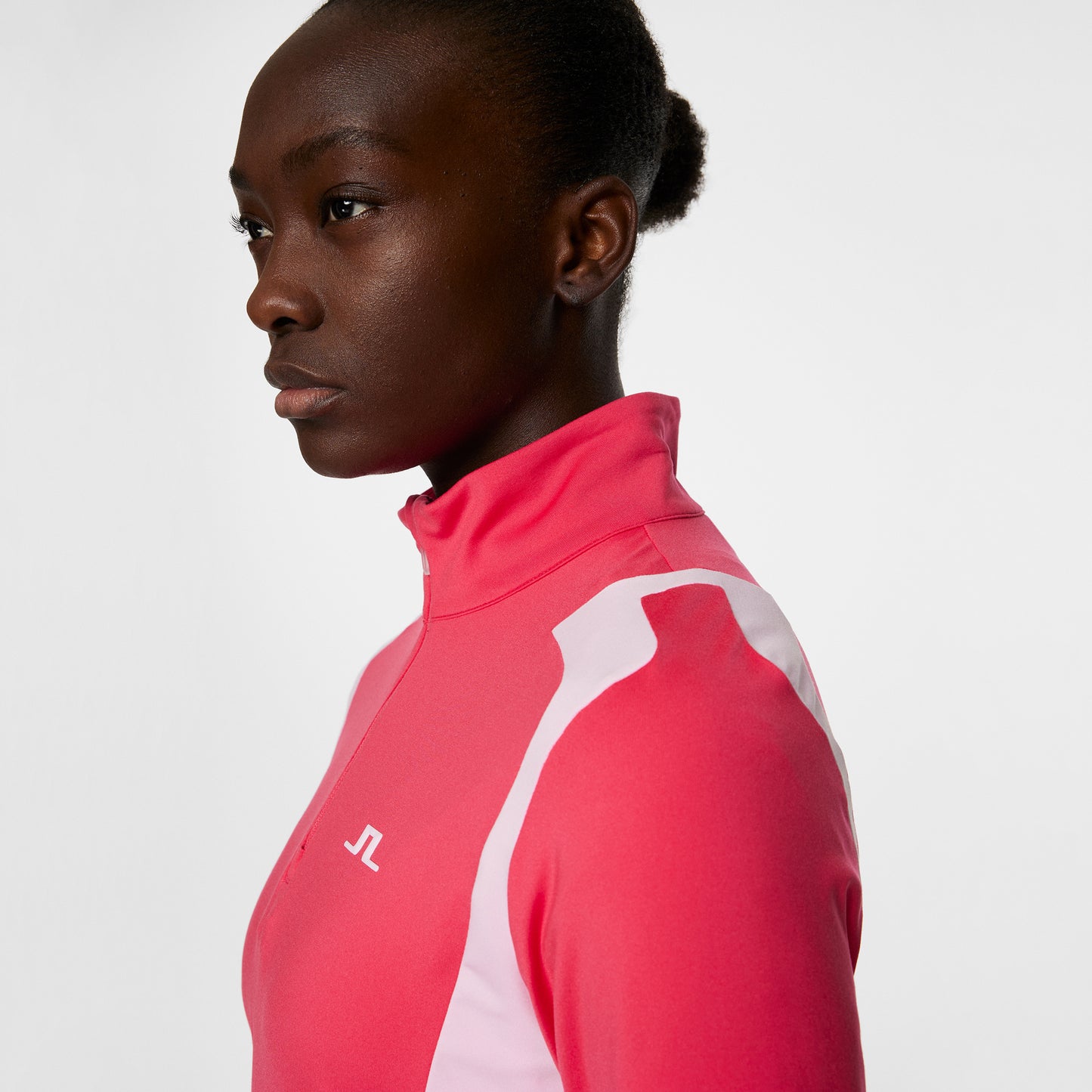 - "Mae" 1/4 zip mid-layer top in 'Azalea'pink