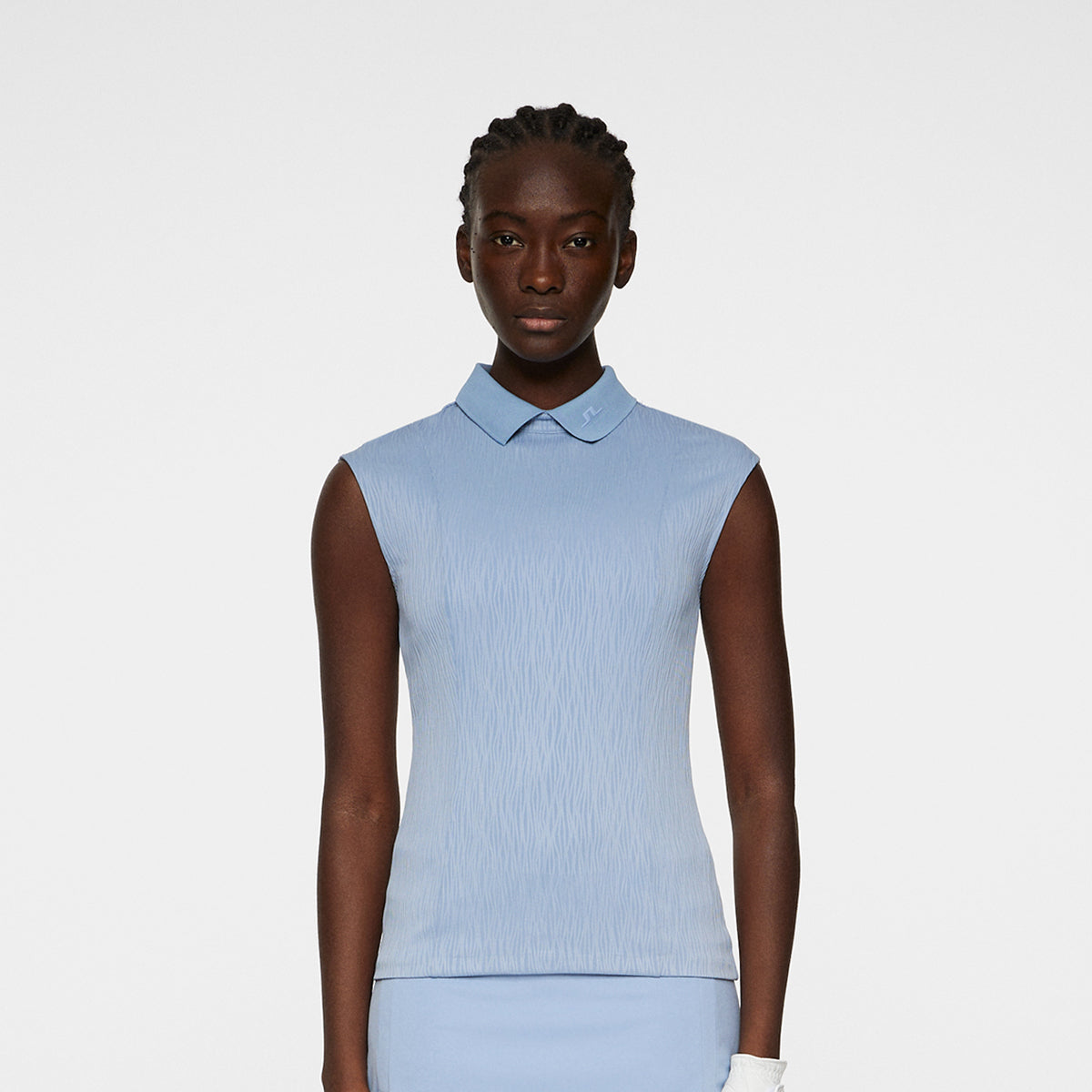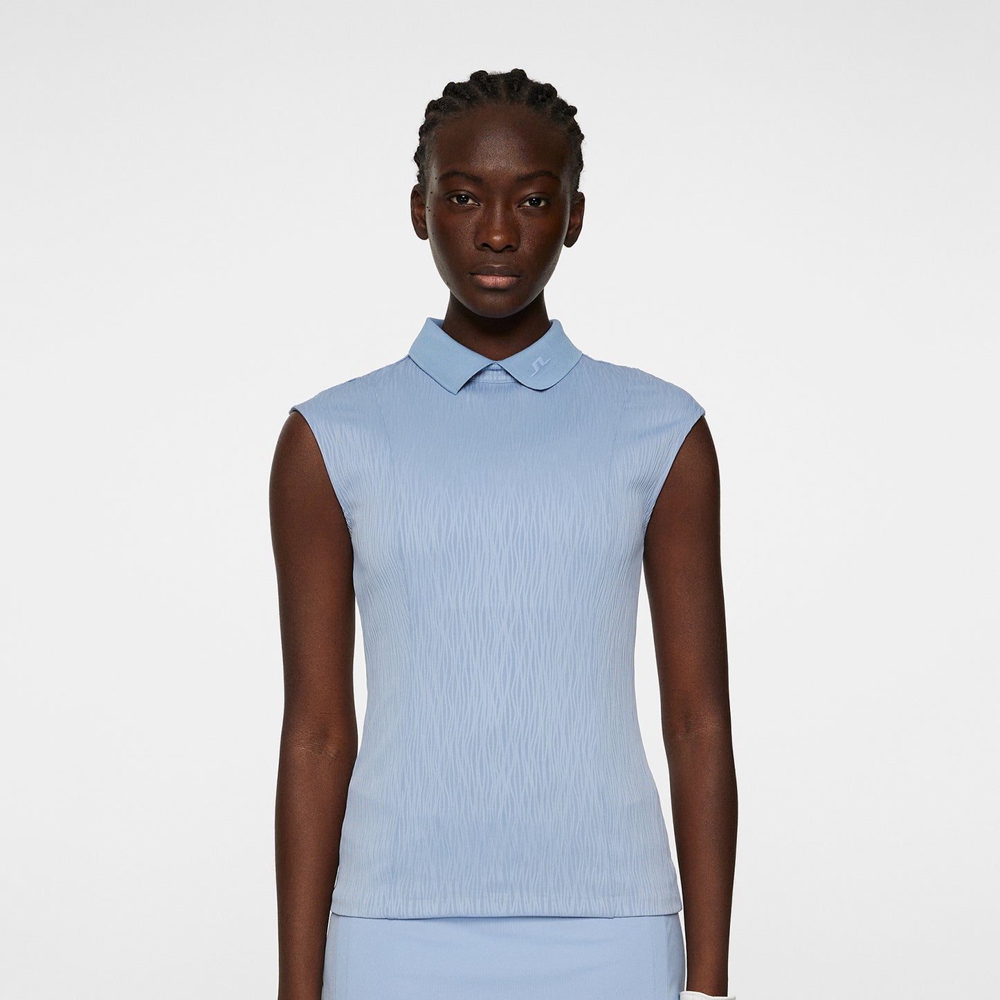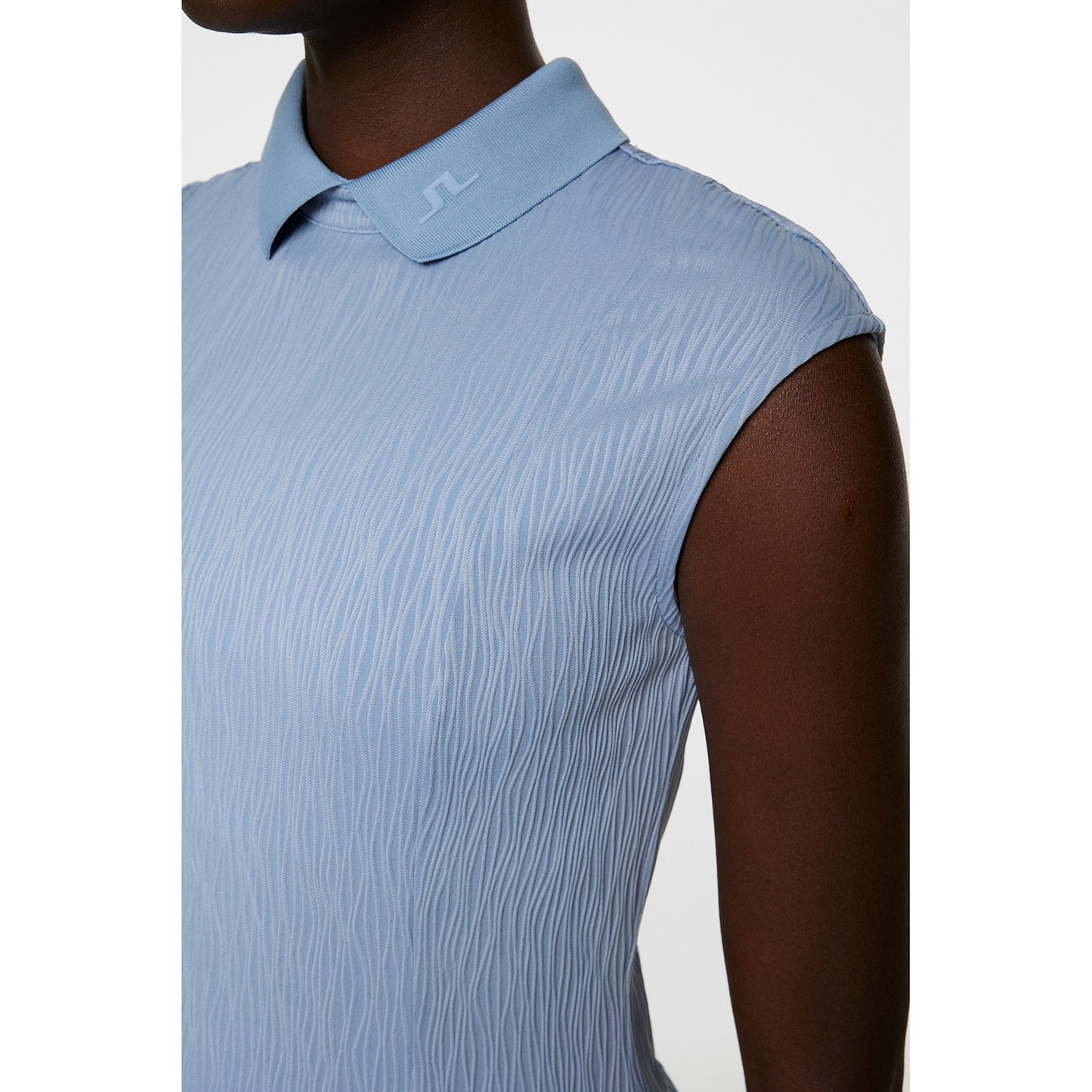J.Lindeberg Ladies Cap Sleeve Polo with Subtle Wave Print