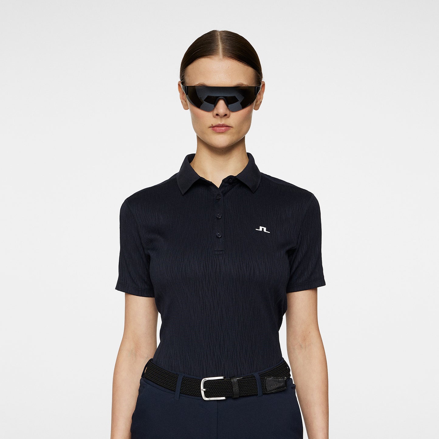 J.Lindeberg Ladies Polo in Navy with Subtle Wave Print - Last One XL Only Left