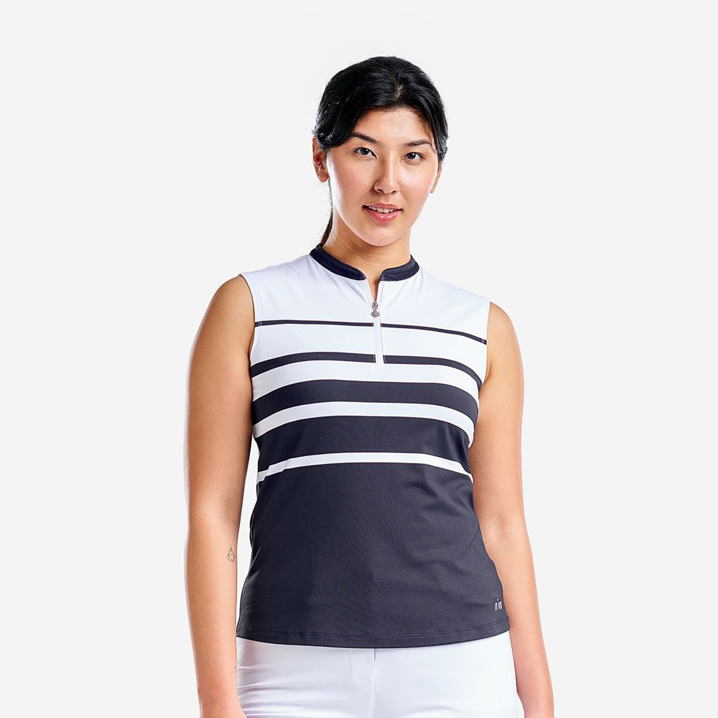 Nivo Women's Sleeveless Polo in White & Navy Stripes