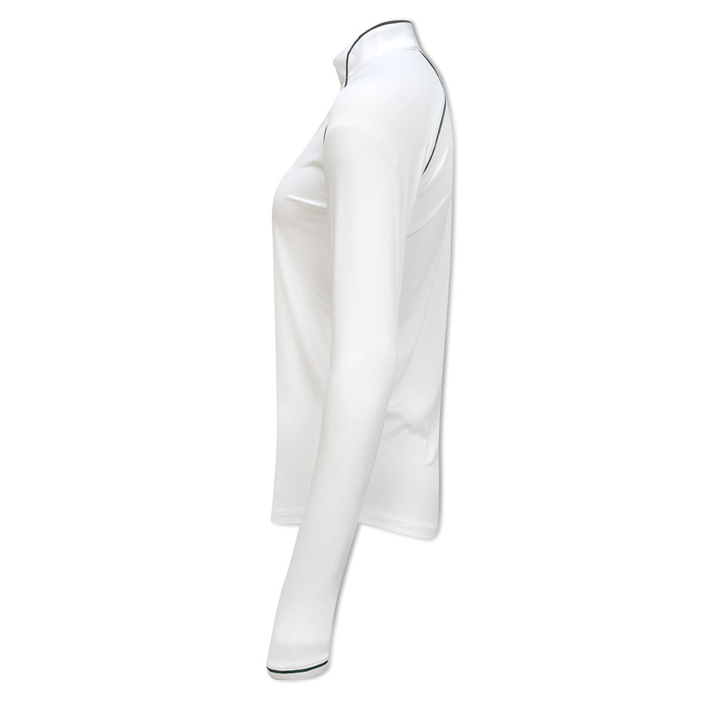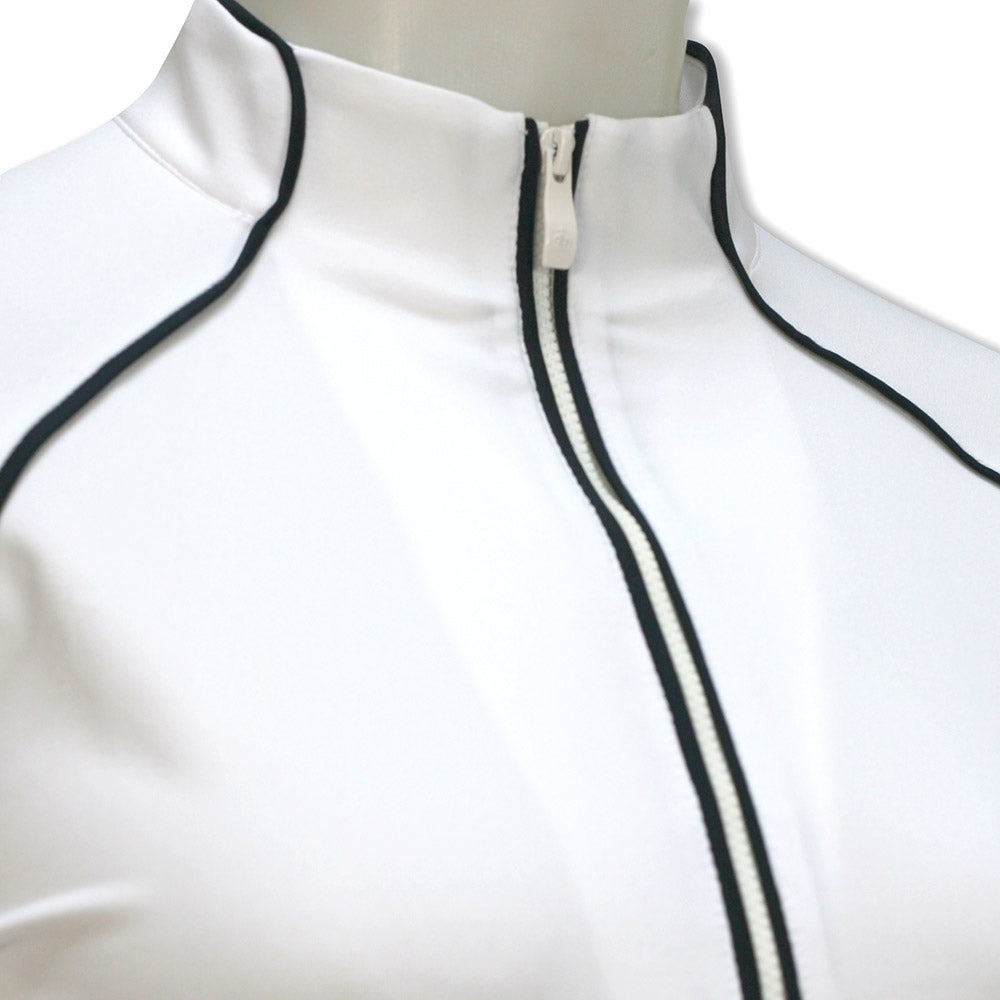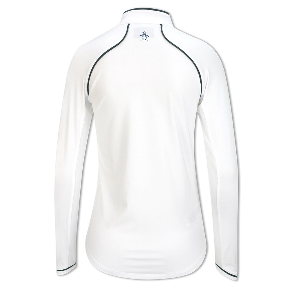 Original Penguin Ladies Long Sleeve Mesh Panel Zip Top in Bright White